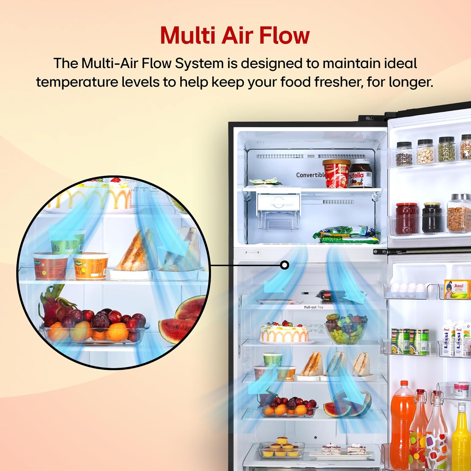 Food stays fresh and drinks get ice cold on any shelf with even and faster cooling performance.