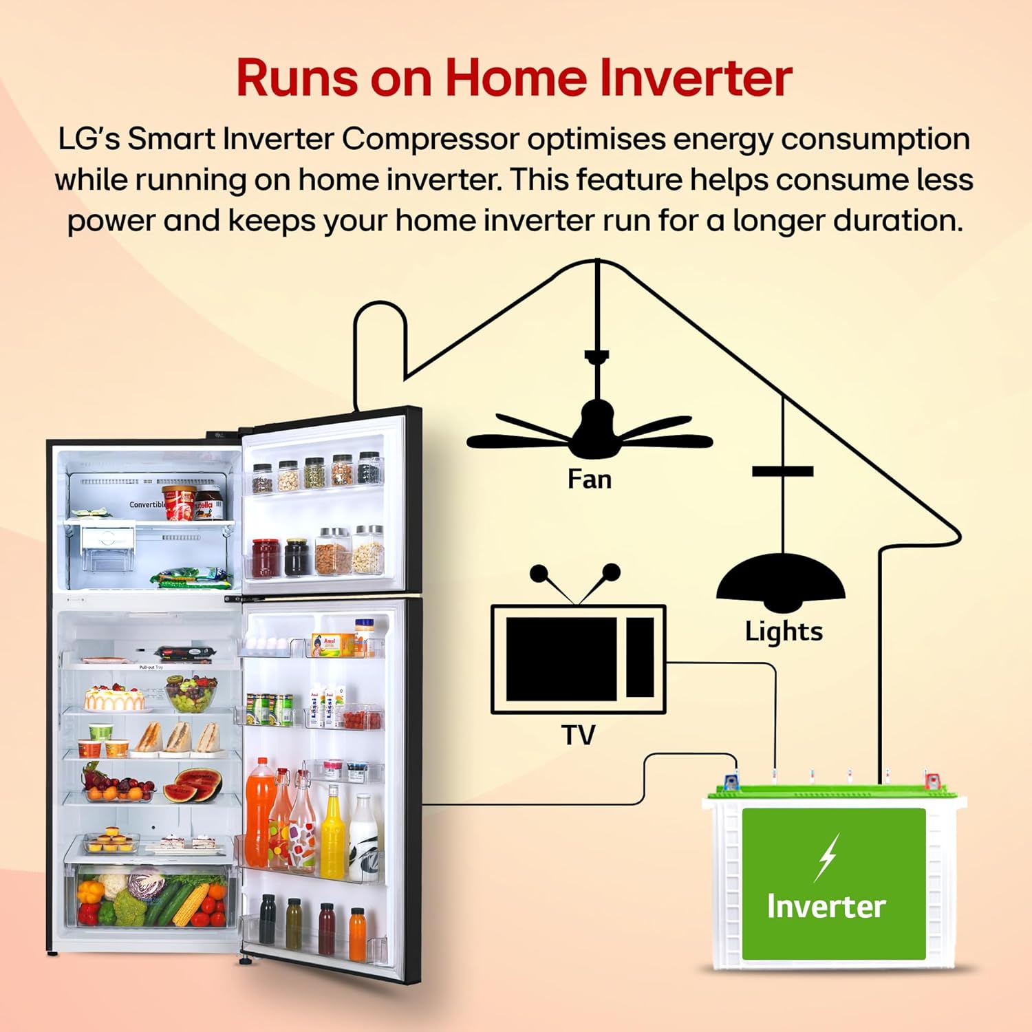 Your food fresh by automatically connecting to your home inverter during outages.