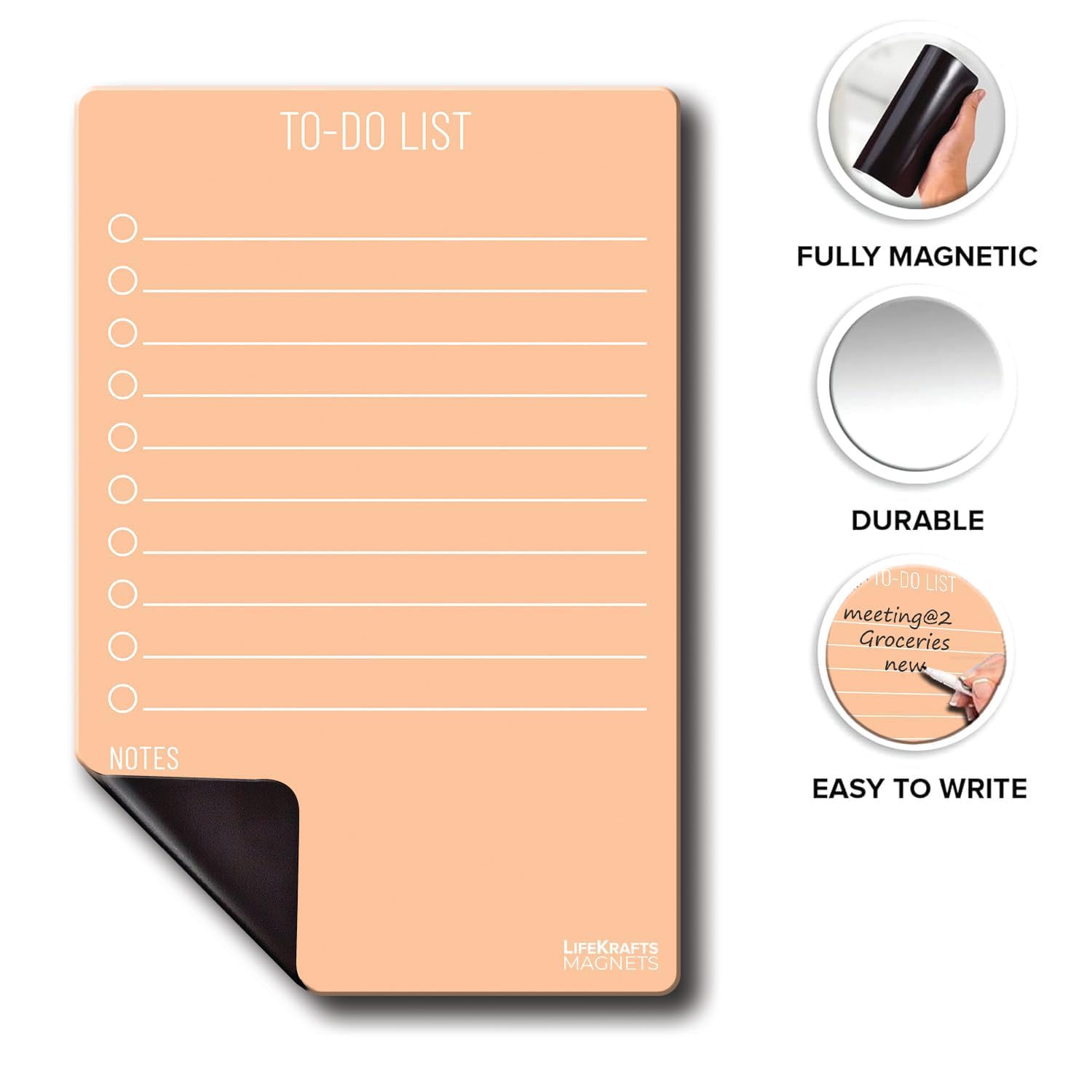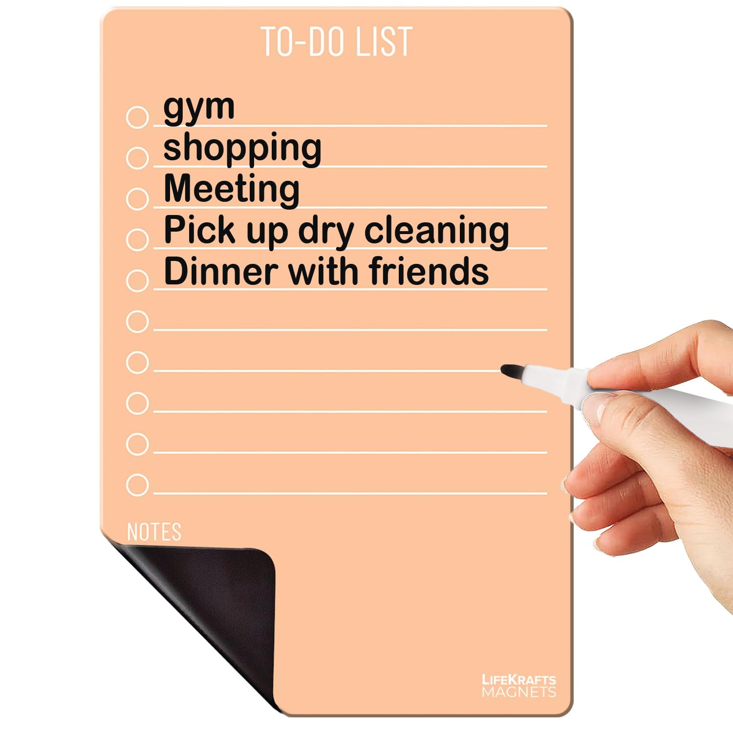 Lifekrafts Magnetic Dry Erase to-Do Planner | 30×20 cm | Peach – Pack of 1 | Marker Pen with Built-in Eraser | Fridge & Refrigerator Organizer, Grocery & Meal Planner, Daily Notes