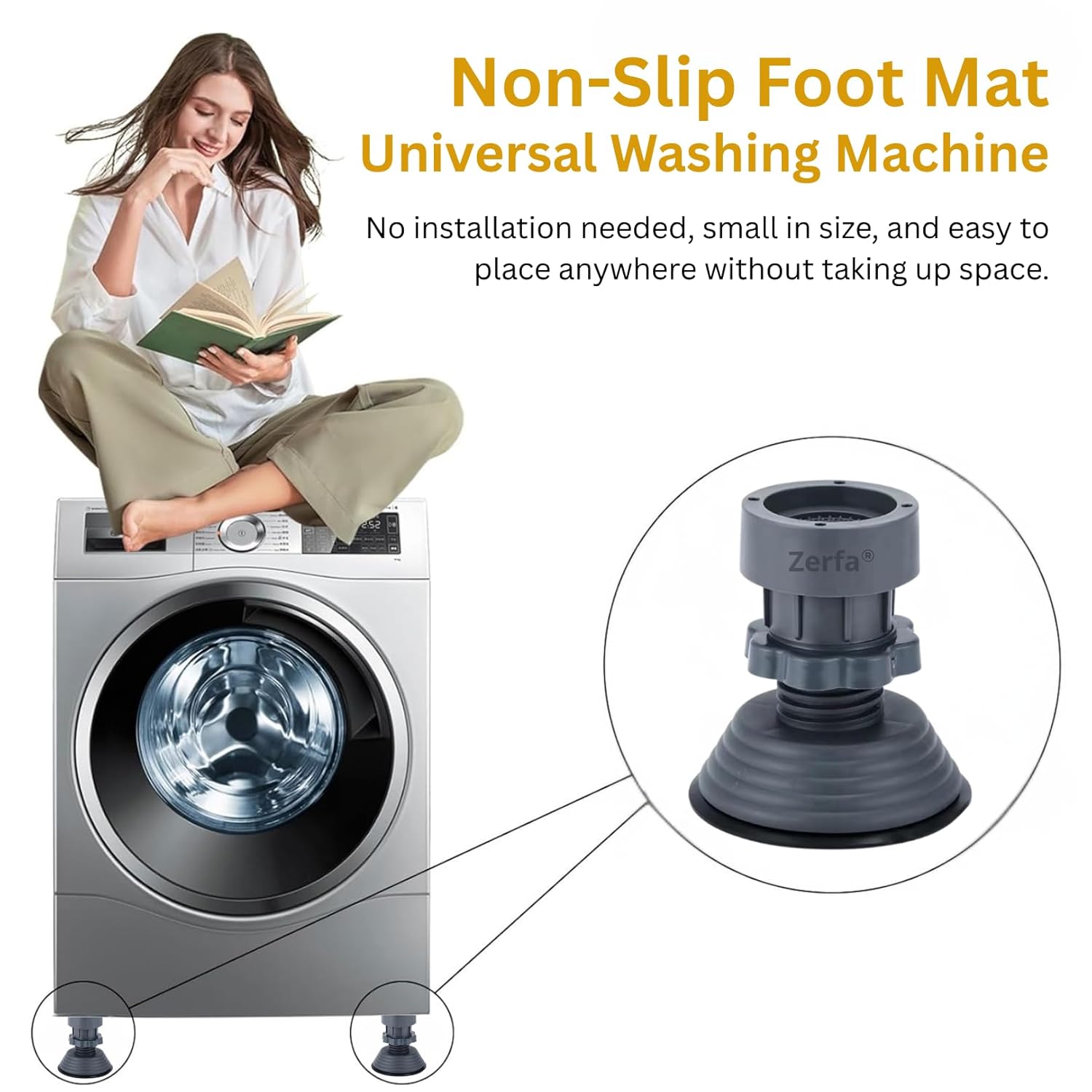 Load Anti Vibration Pads for Washing Machine Floor Trays, Washing Machine Height Adjustment Feet Stand for Refrigerators, Fridge Stands with Broad Big Anti-Slip Rubber Base Pads (4 Pcs Set)