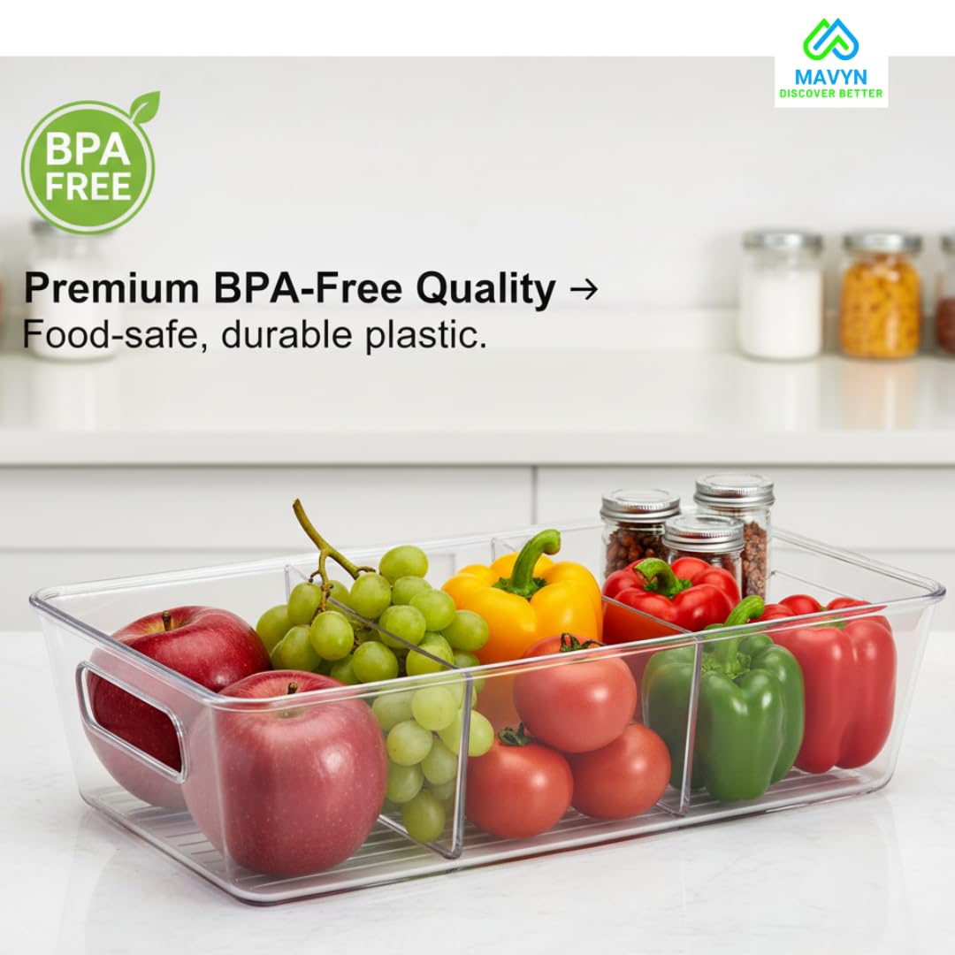 MAVYN Stackable Organizer | Pack of 2 | Fridge Rack with Removable Partitions | BPA-Free Refrigerator Food Container Bin | Pantry Storage Organization Box for Kitchen, Cabinet, Drawer & Freezer