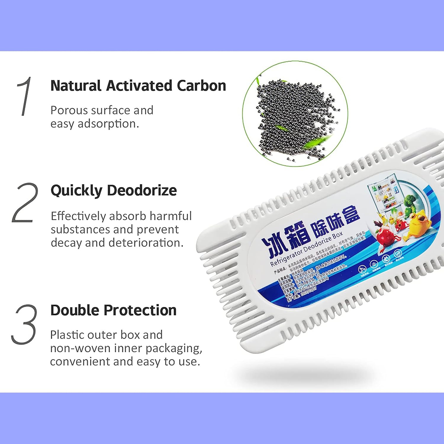 Wide range of uses: It can eliminate odors in fridges, closet, kitchen,wardrobes, shoe cabinets, cars, bathroom and other corners. Has excellent absorption capacity, removes odors, dehumidifies, purifies the air environment, and maintains a good and fresh home environment.