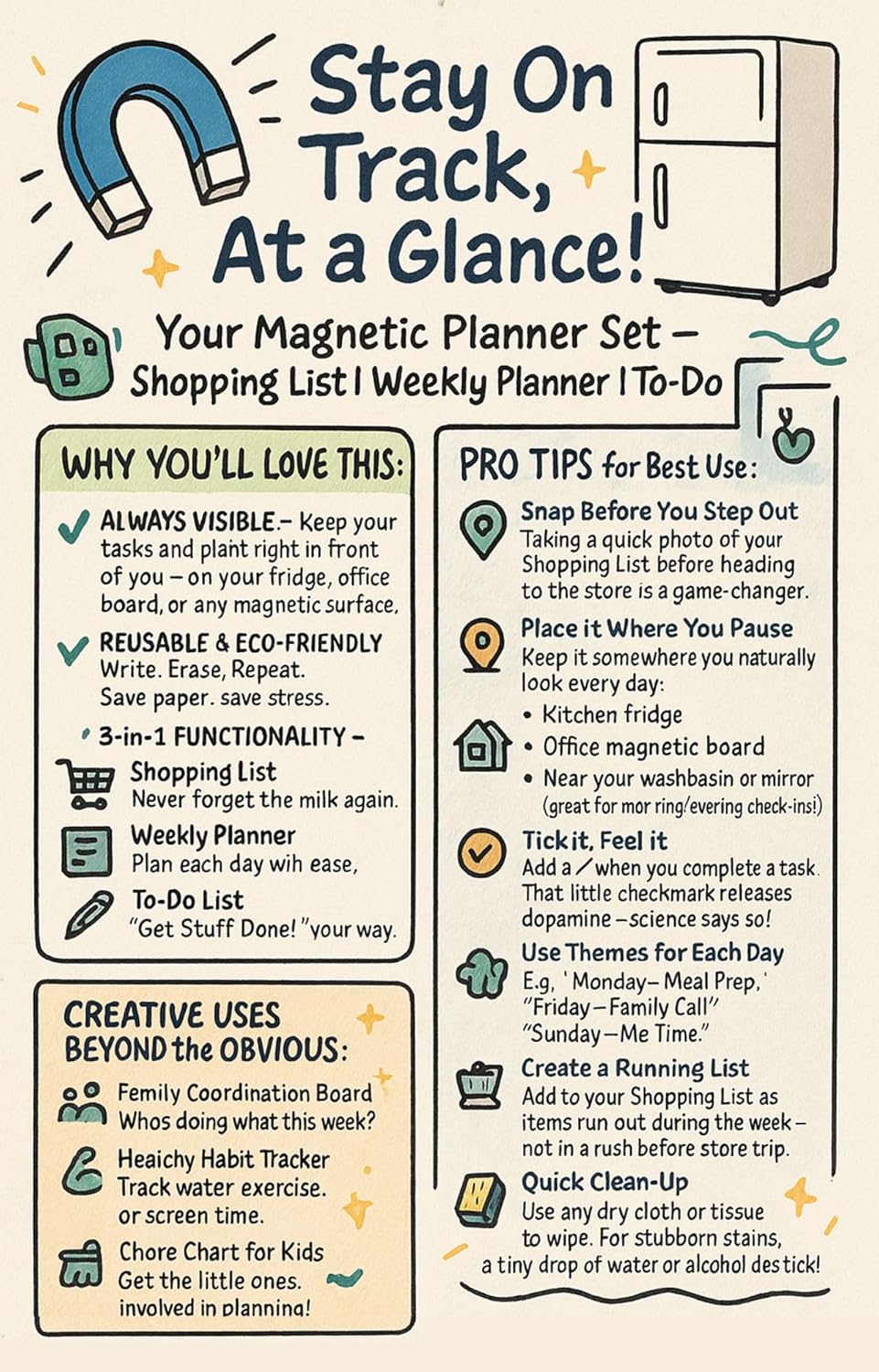 Our Fridge Magnet Planners are REUSEABLE.