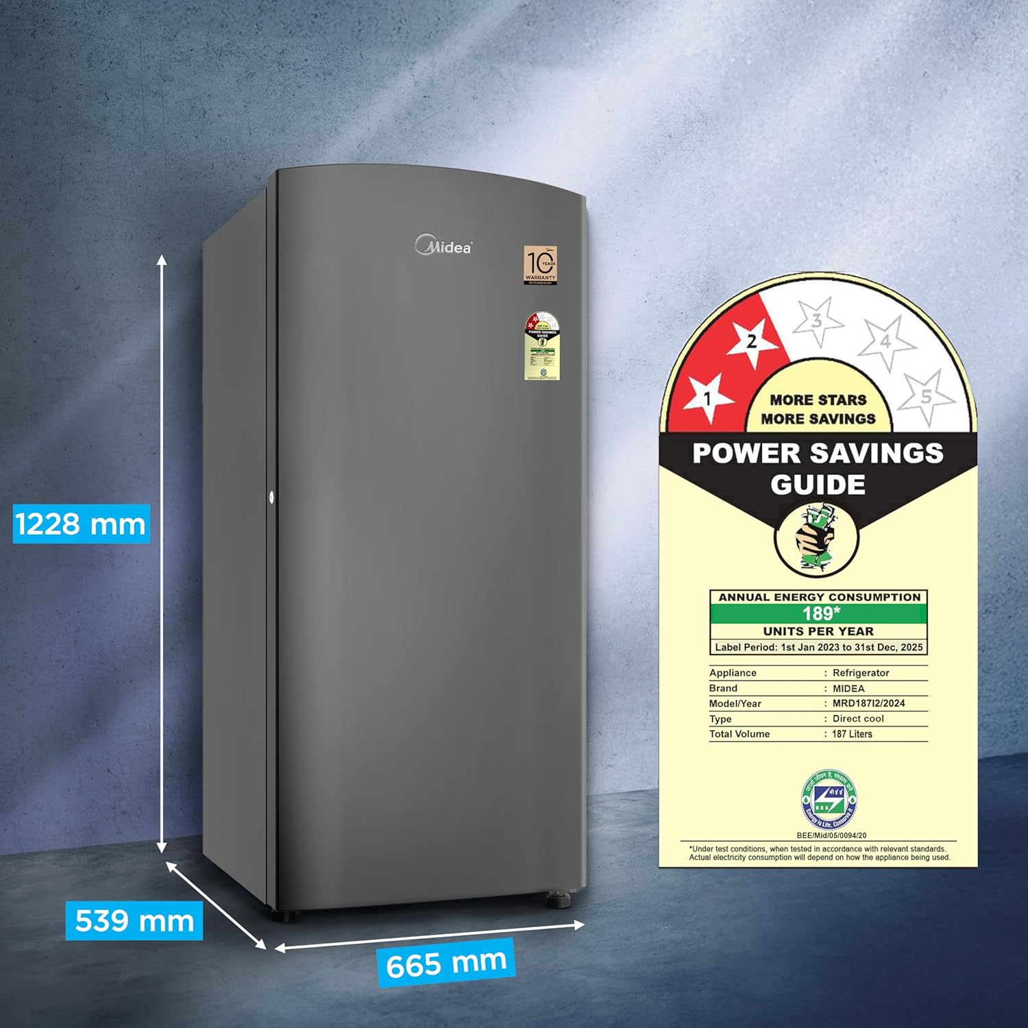 Midea 187 L 2 Star Direct Cool Refrigerator (MRD187I2XPAG, Grey, 2025 Model)
