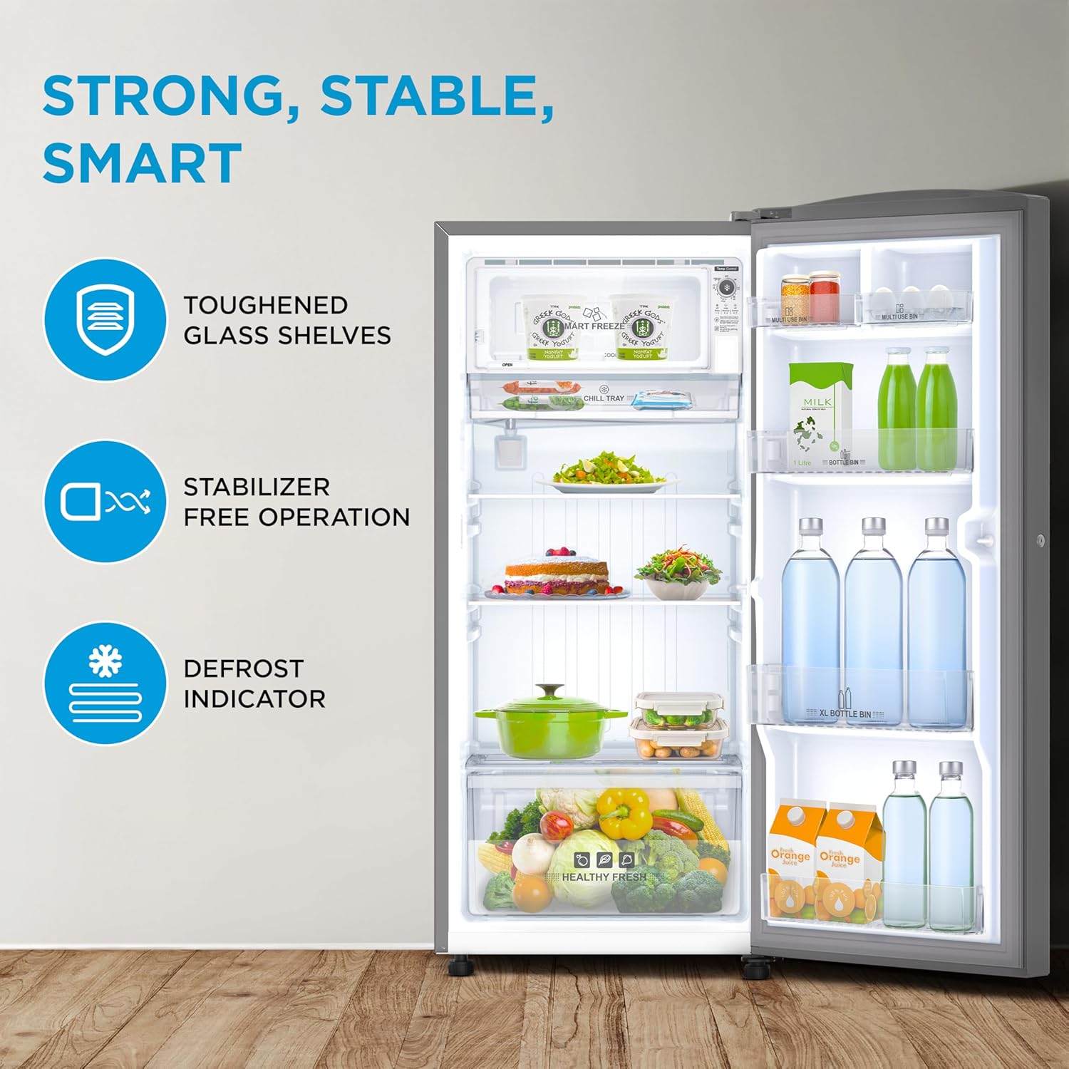 Ample Storage Capacity: With a total capacity of 187 litres, this single-door refrigerator is well-suited for small families or bachelors. It includes 174 litres of space in the refrigerator compartment and 13 litres in the freezer. The layout is designed to accommodate daily essentials, making it easier to store and access fresh and frozen foods.