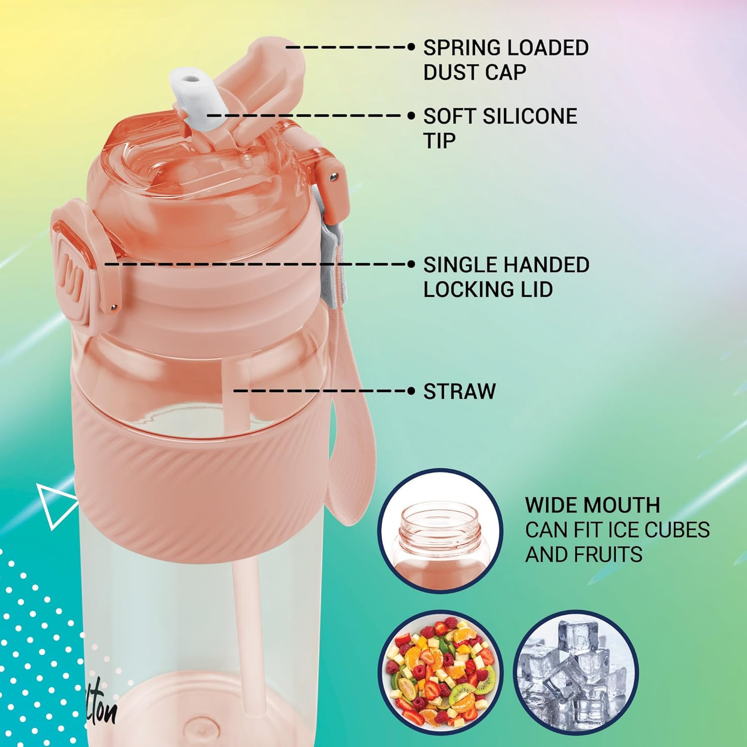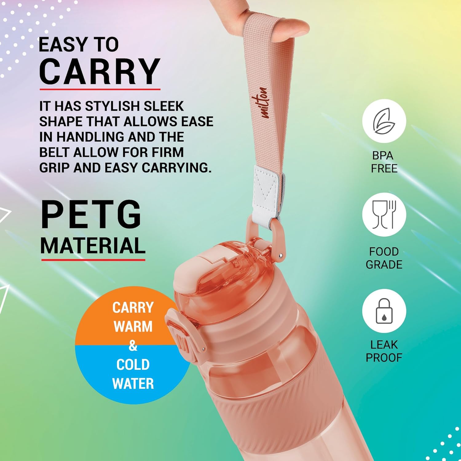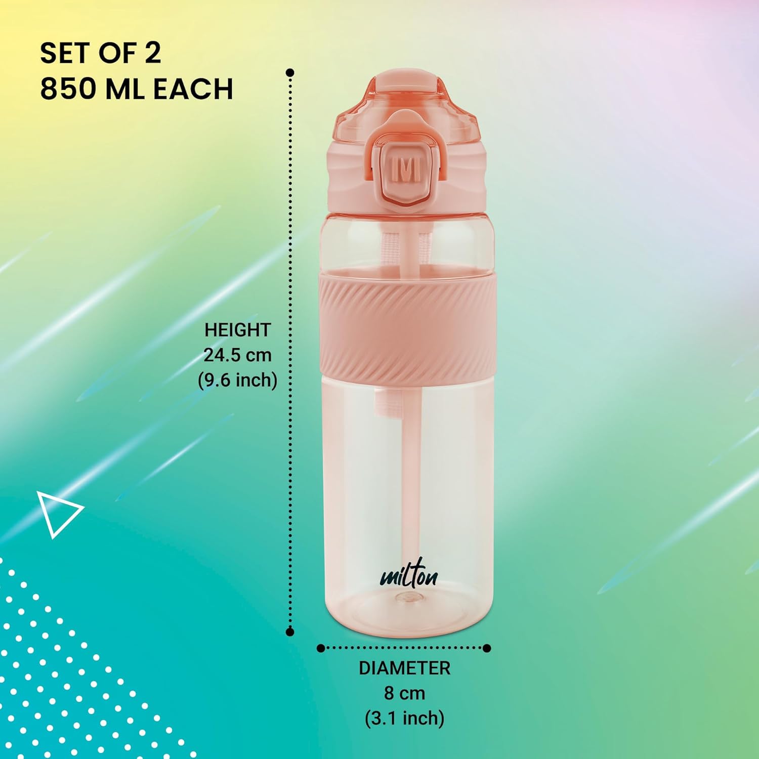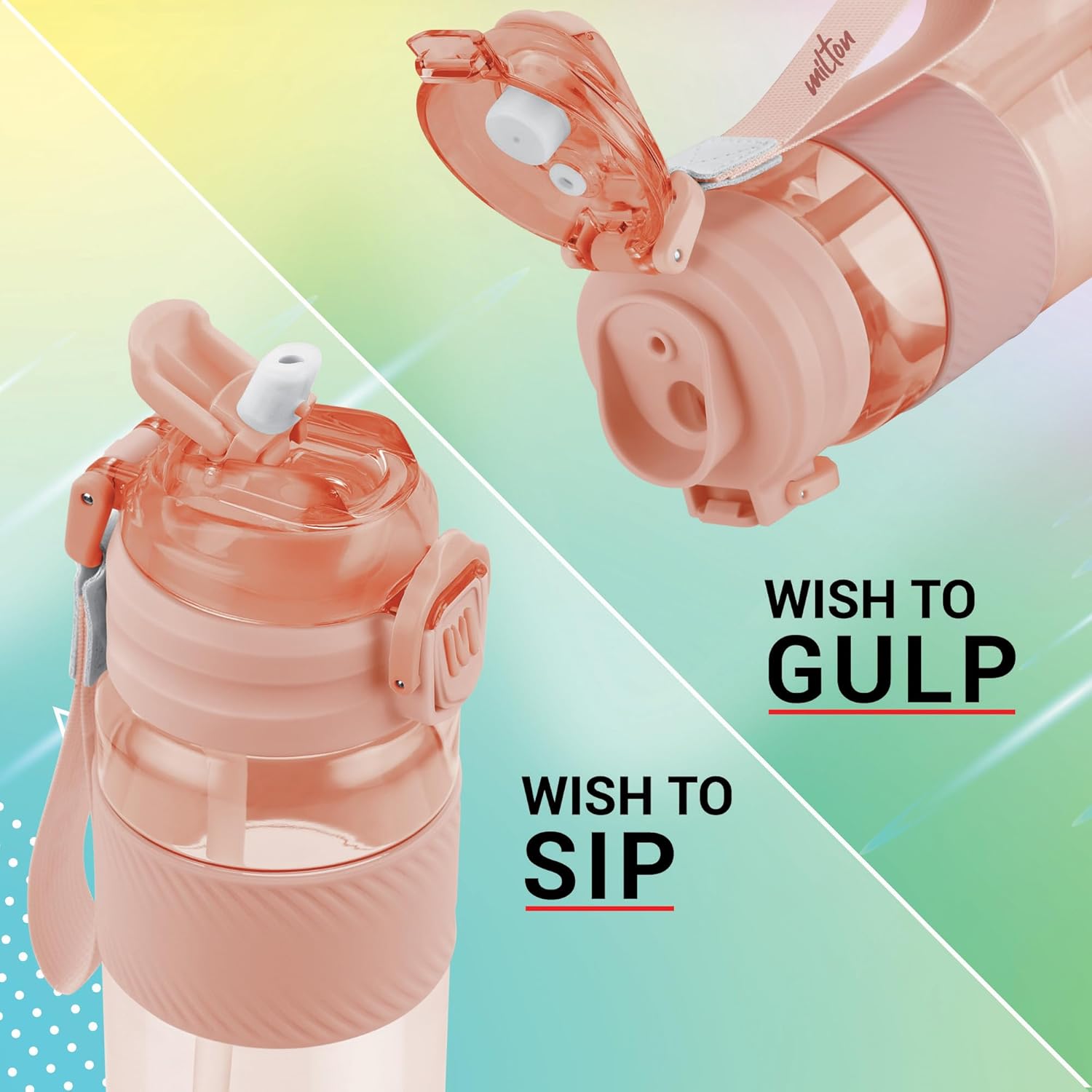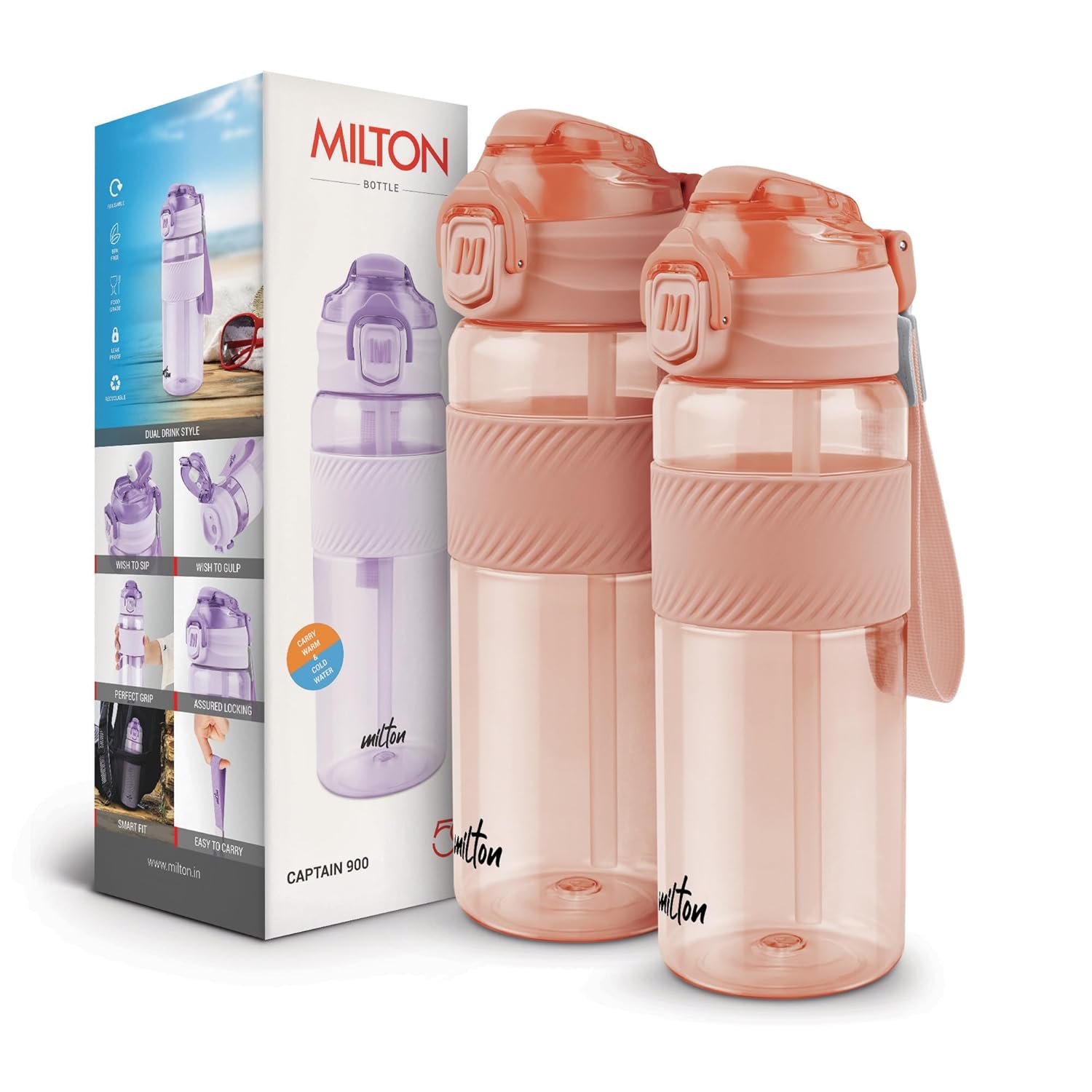 Milton Captain Unbreakable Plastic Water Bottle 850 ml Sip Plus Gulp,BPA-Free & Leak-Proof with Hand Strap,Ideal for Gym Workouts,Outdoor Adventures,School & Office Durable & Convenient,set of 2,Peach