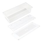 Found the ideal fridge storage containers. These plastic container are practical and makes storage easier. These fridge organiser storage boxes are very good at organizing fruits and vegetables. I love its quality and storage capacity is also spacious. The drain tray seems to be working since we are getting fresh vegetables , The cleaning of this fridge organizer is easy . These fridge containers for storage are stackable, making my fridge look spacious. Has made my life easier and fridge looks neat and clean.
