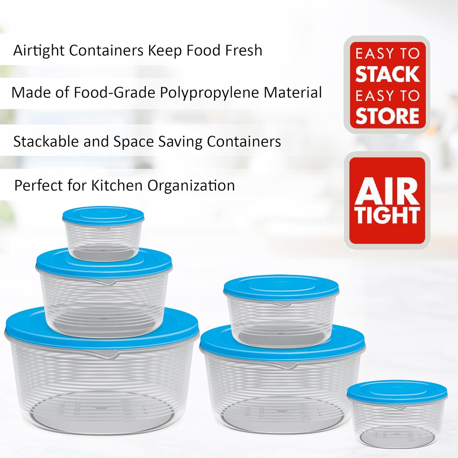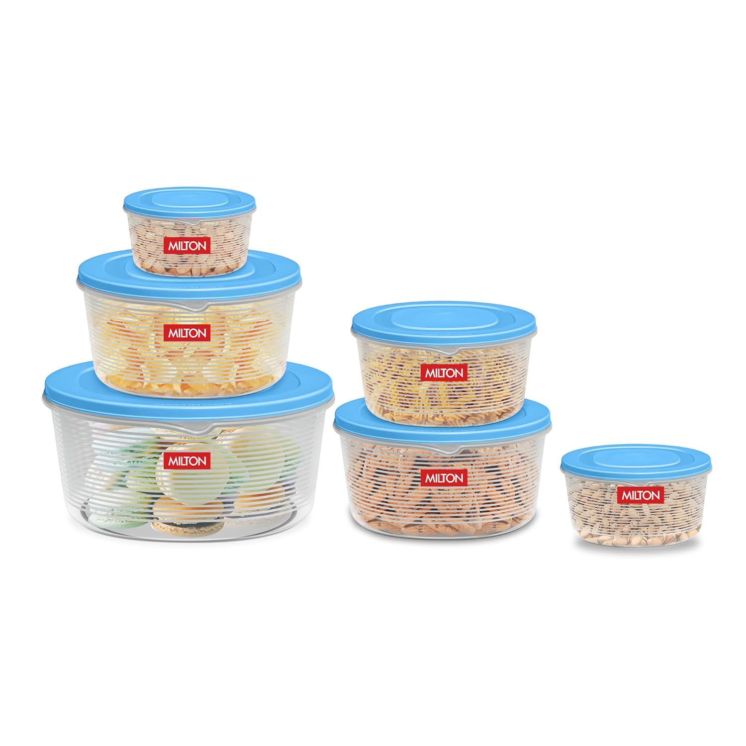 MILTON Store It Round Plastic Food Storage Container Set of 6 with Air Tight Lid (200ml, 400ml, 600ml, 1L, 2L & 3L) Fridge Boxes, Multipurpose Leakproof Box for Vegetable Snacks Kitchen Bowl, Blue