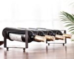 STACKABLE STORAGE: Each rack holds up to 3 wine bottles or bottled beverages for organized kitchen countertops, tables, pantries, cupboards and dining rooms; Bottles are stored horizontally in individual compartments so they are always easy to grab; Stack to create vertical storage to help maximize your space – use them on the counter or in the fridge for perfectly chilled drinks; Ideal wine rack stand for smaller kitchens or for attractive, space-saving storage at your wine bar; Set of 2