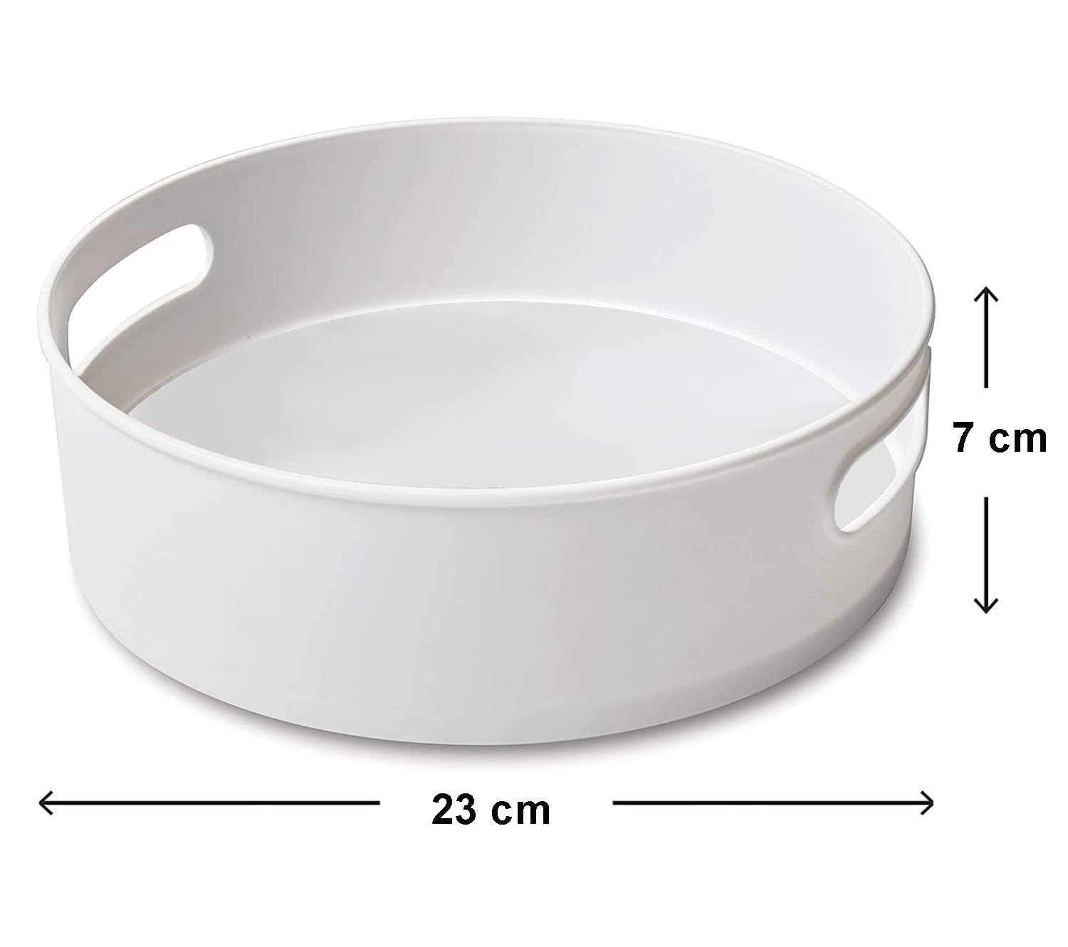 Effortless Accessibility: The 360-degree rotating tray for kitchen organizer provides easy access to spices and essentials, smooth-glide Lazy Susan rotates so you can quickly reach what you need, and features handles for easy transport Perfect for kitchen accessories items for home, this organizer tray offers seamless integration into your existing kitchen organisers, ensuring convenience. Package includes -1 white rotating turn table lazy susan , size : Diameter-23 cm , Height- 7 cm .