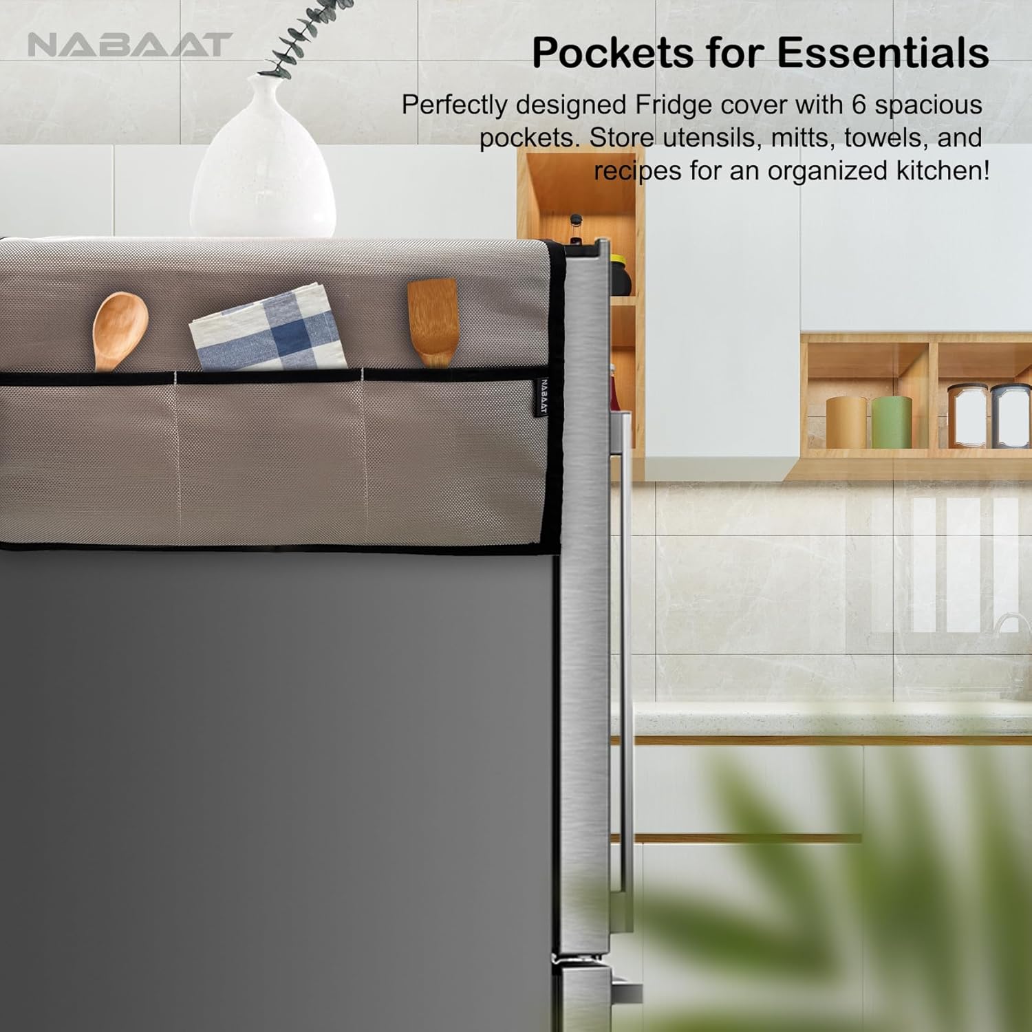 PROTECT YOUR FRIDGE: Nabaat Fridge cover keeps your beloved Refrigerator under wraps while being protected from various kitchen elements including dust, dirt, stains, spills, fingerprints, scratches and more. It is padded to prevent the appliance from tiny impacts. You can be assured that you will have the Fridge look as good as new.