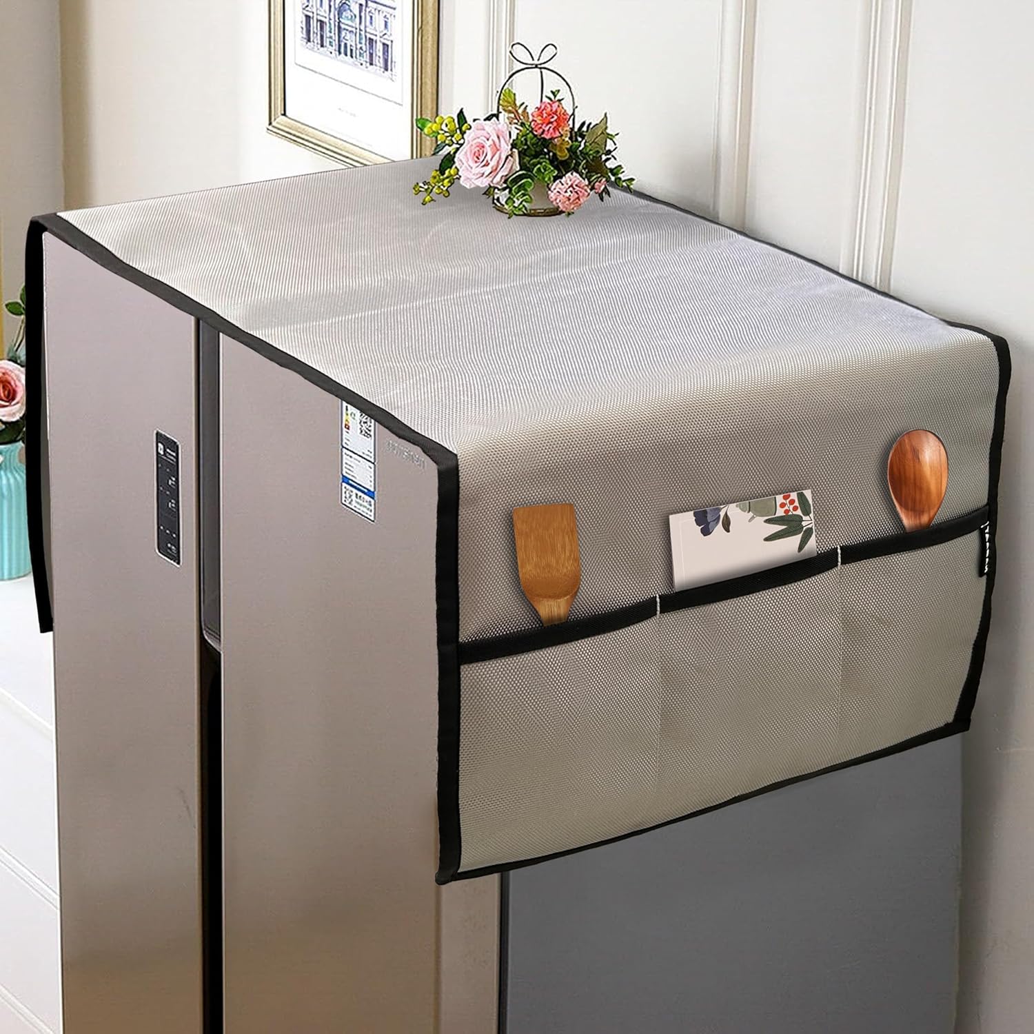 INTIMATE DESIGN: Our Fridge cover color goes well with every type of kitchen counter table or decorations. Six spacious pockets offer convenient storage for kitchen essentials, keeping them within easy reach. Easily be folded and stored when not in use.