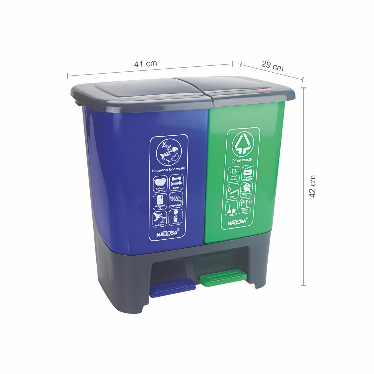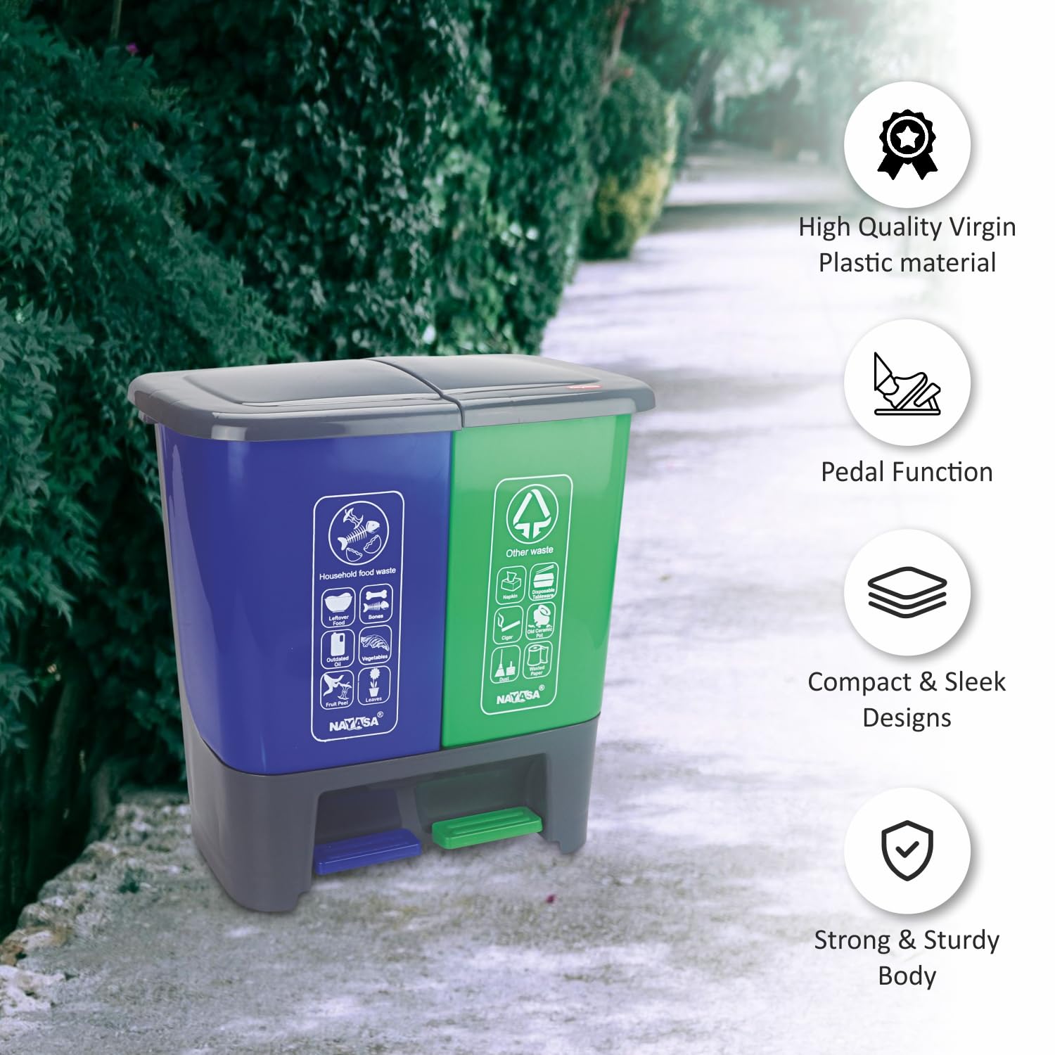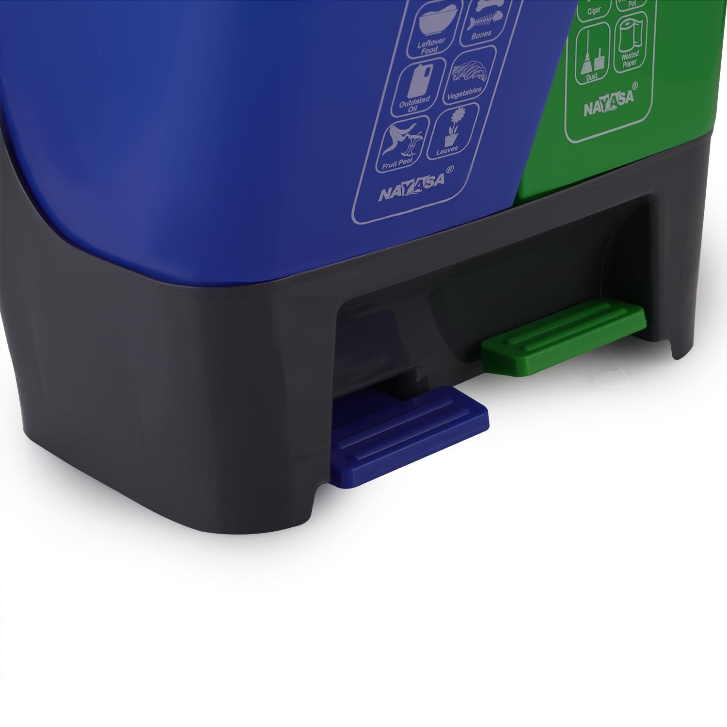 Nayasa 2 in 1 Pedal Dustbin Bold – 25 L (12.5 L Each) | Twin Compartment Wet & Dry Waste Bin | Durable Plastic Pedal Bin for Home, Kitchen & Bathroom | Blue & Green
