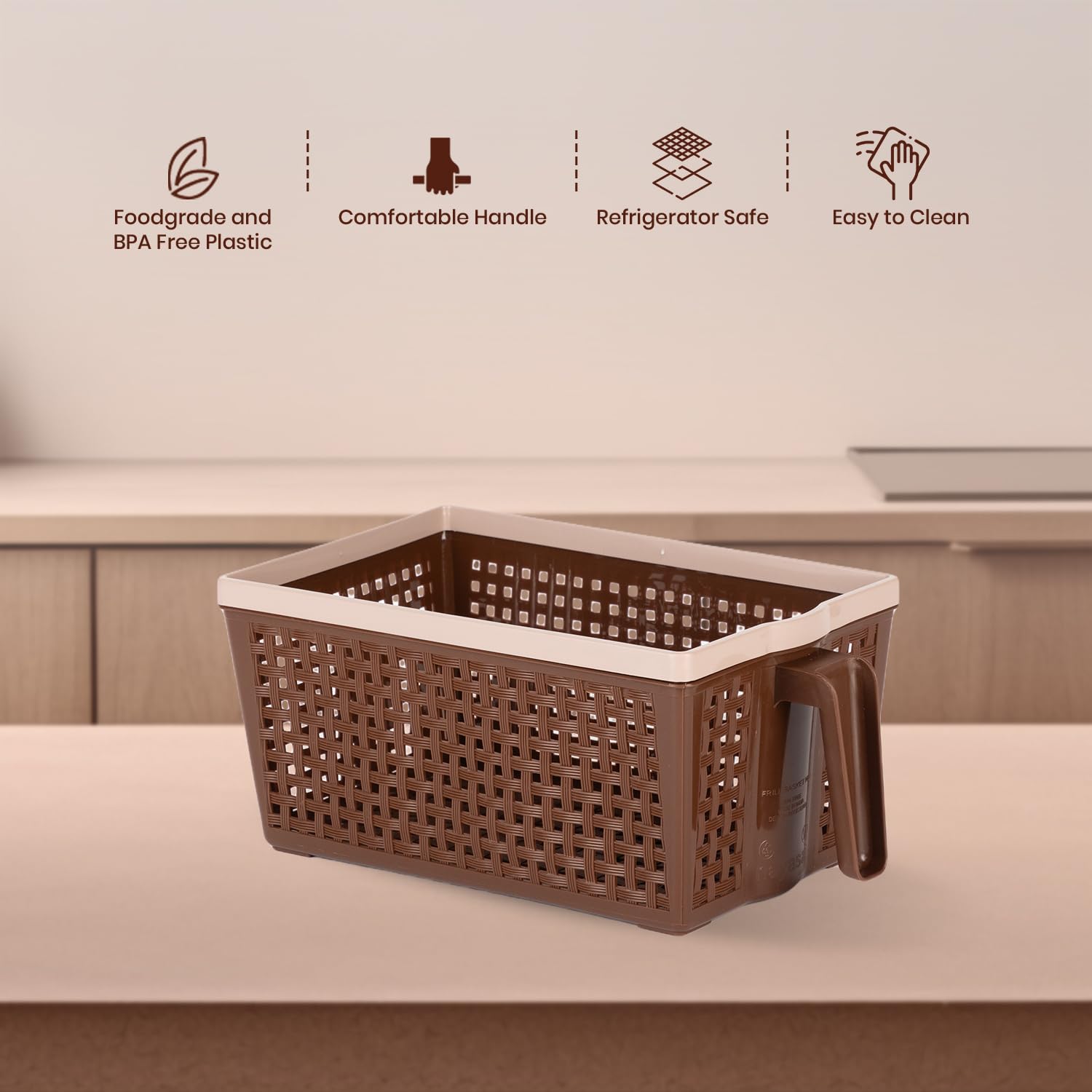 Nayasa Frill Fruit Basket for Dining Table & Fridge | Multipurpose Basket for Storage | Storage and Organisers | Ideal for Kitchen, Fridge & Dining Table | 6 Litre | Brown