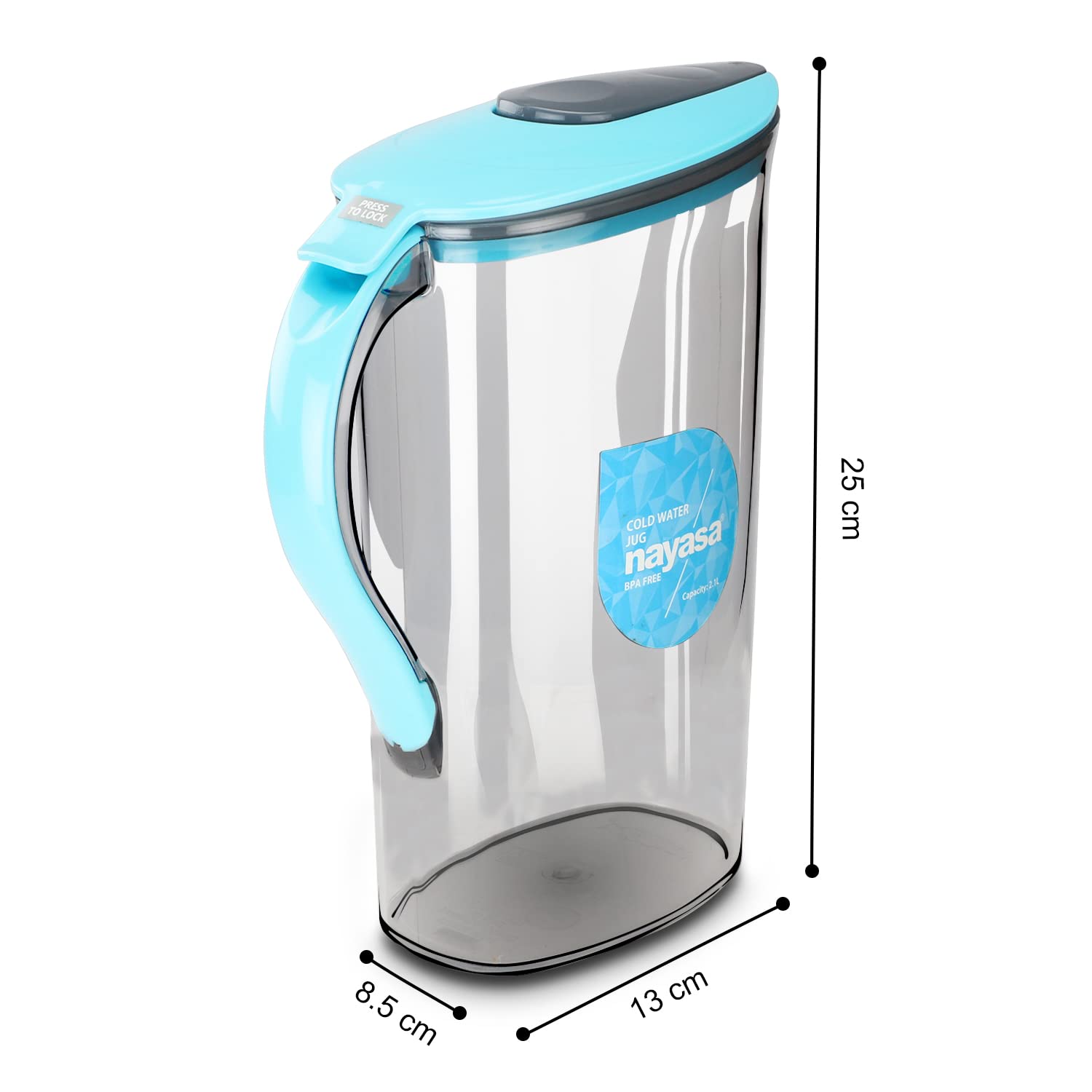 Nayasa Icon Jug- 2100 Ml Jug Is Just Perfect For Summers To Keep The Freshness Alive As They Are Made Of High Grade Of Plastic And Bpa Free, Reusable Material. The Durable Body Makes Them Perfect For Daily Use Whether At Home, Office Or Outdoor Use. The Sturdy Handle Makes The Jug Easy To Lift Effortlesly. It Has Two Press Button For Opening Lid, One Button For Pouring Liquid And Second Button Is For Filling The Jug Without Putting Efforts To Open The Jug. Our Nayasa Jug Is Mainly Designed For Cold Water Storage & Can Be Store Normal Temperature Water In It. It Comes In 3 Attractive Colours And The Capacity Of The Jug Is Sufficient To Serve 5 To 10 People At Once. This Jug Can Be Used In Home, Office, Birthday Parties, Festivals, House Warming Party, Hotels, Cafes, Offices And For Daily Use. Icon Jug Matches To Every Occassion And Fits In Every Place Will Definetly Grabs The Attention.