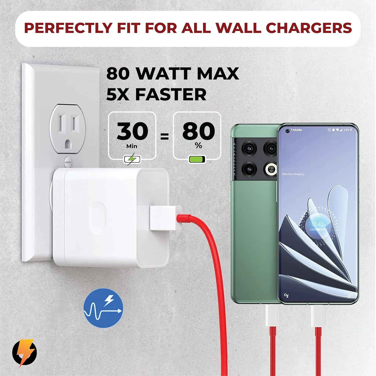 One Plus Fast 80W Original USB Type C Data Sync Fast Charging Charger Cable for One Plus 13,13s,13r,12,12r,11,11r,10,10r,10t,10pro,9,9rt,9r,9pro,8,8t,7t,7pro,Nord 5,CE5,CE4,CE3,CE2lite,4,3,2,2T