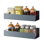 A contemporary metal spice rack designed for convenience, easily installable on the side or front of appliances like refrigerators and washing machines without the need for drilling holes. Ideal for organizing kitchen accessories, this magnetic shelf is a superb kitchen gadget, providing a stylish and practical solution.