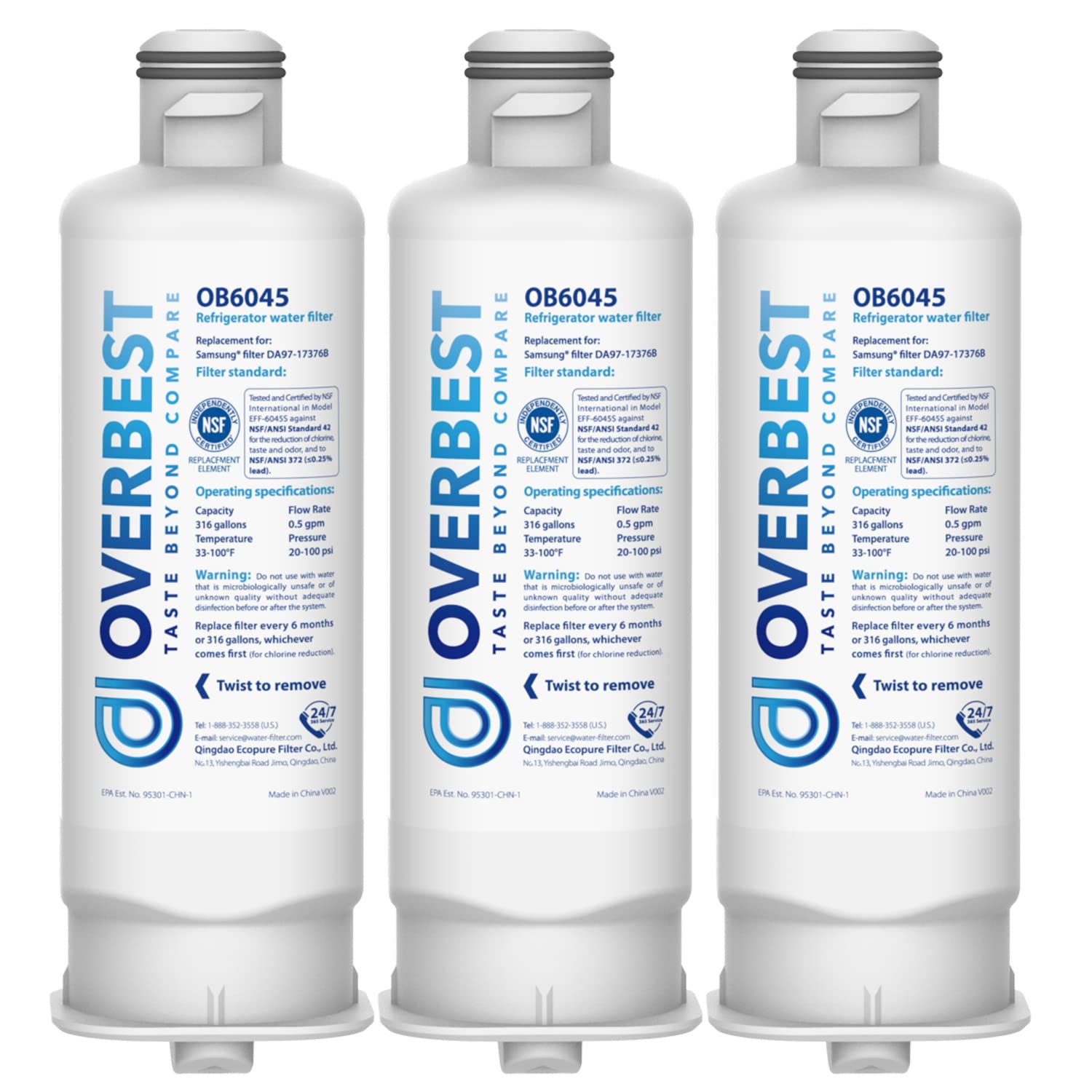[Economical Solution] Overbest replacement refrigerator filter for Samsung HAF-QIN/EXP needs to be replaced after 6 months (equivalent to 316 gallons). This means fresh, clean drinking water costs an average of 8 cents per day. Overbest believes everyone deserves a healthy life.
