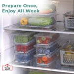 See-Through Magic: No more guessing games—spot your veggies, fruits, and leftovers at a glance! The transparent lids let you see what’s inside at a glance, saving you time and keeping your food protected from air exposure.