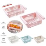 Pack of 4 Adjustable Plastic Storage Baskets for Ultimate Refrigerator Space Optimization, Expandable Fridge Rack, Sliding Vegetable Organizer Tray Box, Freeze Space Saver Drawer