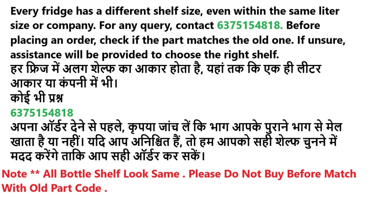 Note** Please Do Not Buy Without Match code with old part ( All Bottle Shelf Look Same Please Match Code With Old Bottle Shelf )