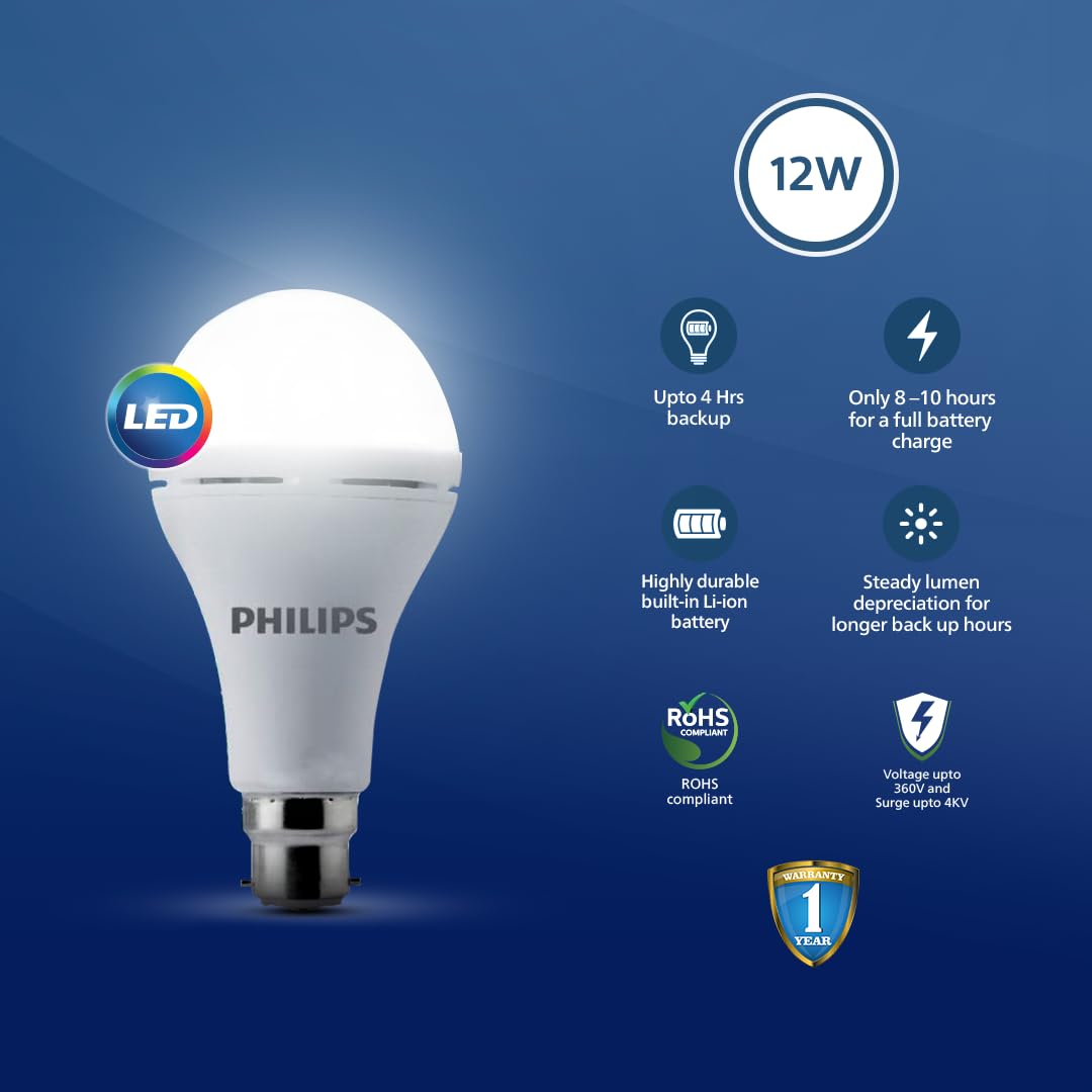 PHILIPS 12W Emergency Bulb | Rechargeable Emergency Bulb for Power Cuts | Backup : 4hrs, Cool Day Light,Pack of 1, b22d, LED