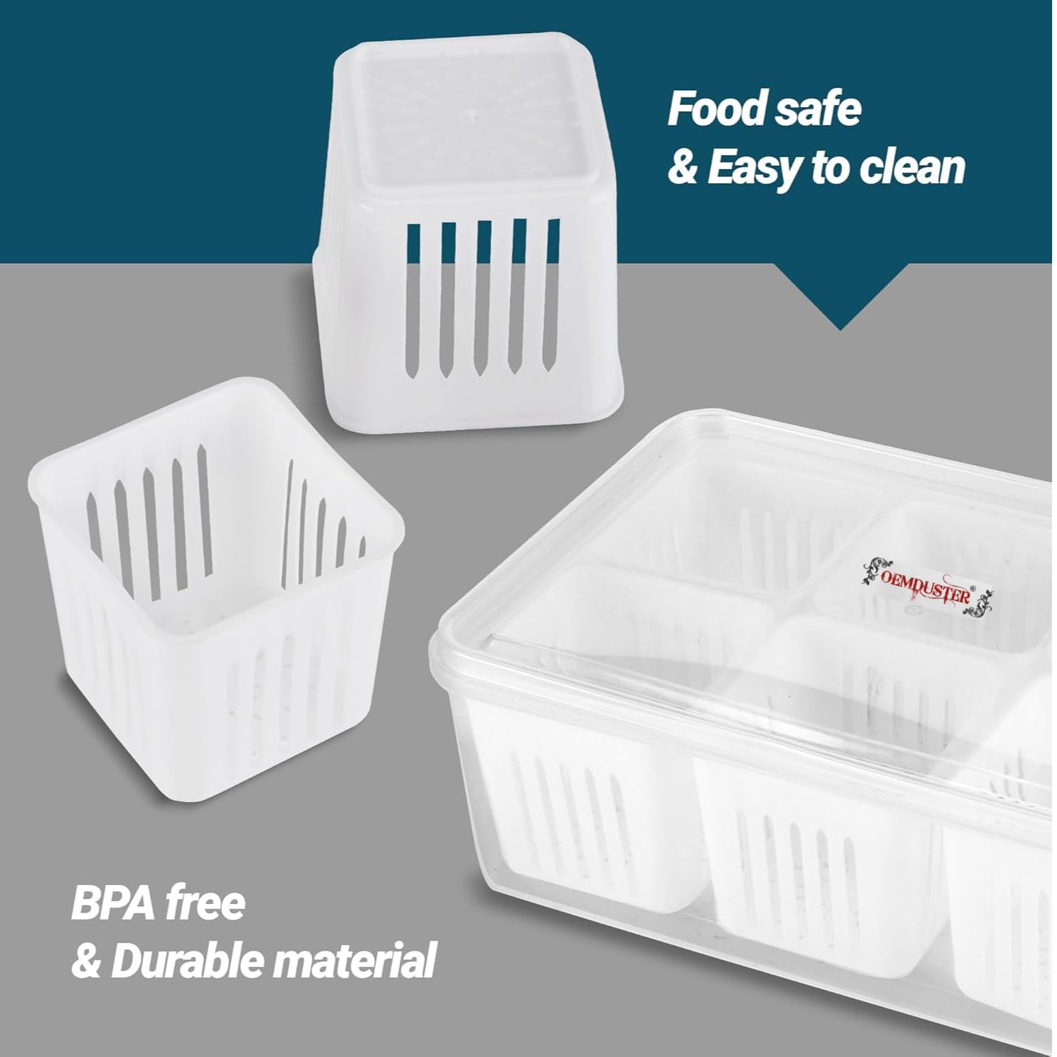 OEM DUSTER is committed to bringing you innovative, durable, and food-safe kitchen storage products designed to keep your home organized and clutter-free. Our Plastic Fridge Storage Multi Grid Boxes help maintain freshness, maximize fridge space, and simplify your daily routine. Whether you are storing vegetables, fruits, snacks, meal-prep items, or freezer essentials—OEM DUSTER delivers reliable, BPA-free freezer and refrigerator storage containers trusted by families.