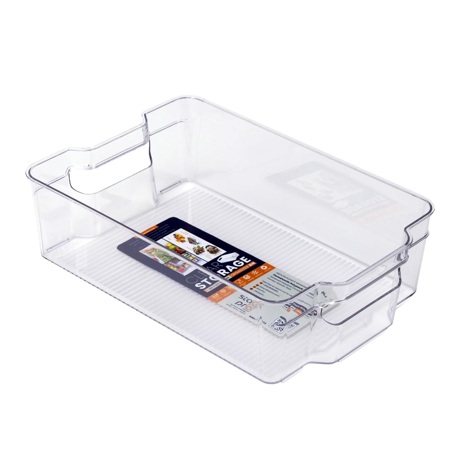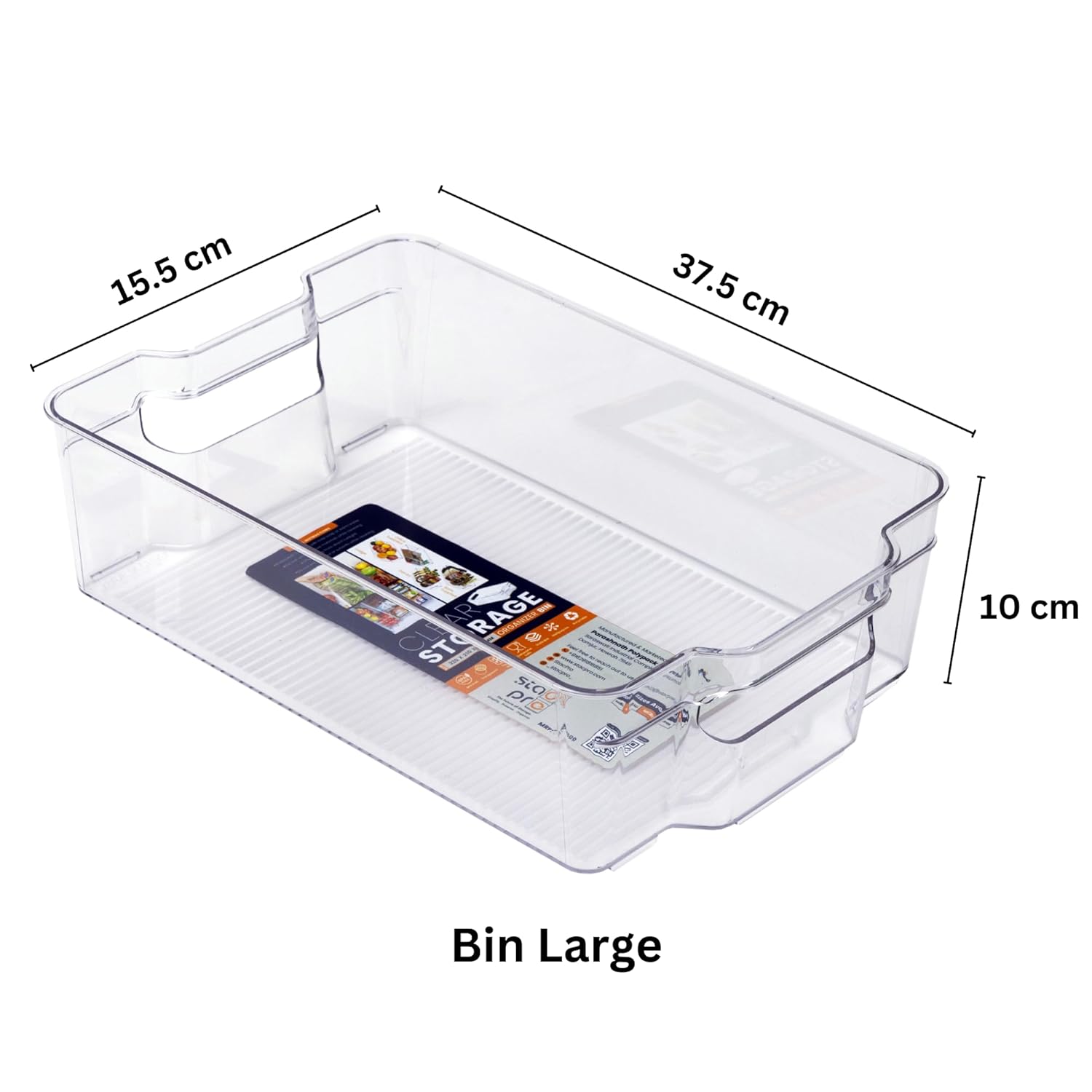 Plastic Pantry Organizer Bins | Fridge Storage Boxes | Refrigerator Containers | Organiser for Pantry, Cabinet, Freezer | Containers for Food, Drinks & Snacks (Large, 37.5x22x10, Pack of 1)