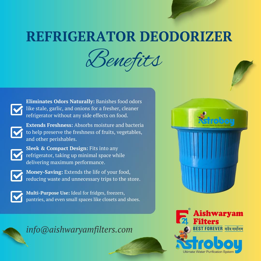 Say goodbye to unpleasant fridge odors with our Astroboy Activated Carbon Refrigerator Deodorizer, the ultimate solution for keeping your refrigerator smelling fresh and clean. Unlike ordinary baking soda or chemical-based deodorizers, our activated carbon filter absorbs and neutralizes odors at the molecular level, ensuring that your food stays fresh without contamination from unwanted smells. 💨 Advanced Odor Elimination – Our high-quality activated carbon filter traps and locks in odors from strong-smelling foods like onions, garlic, fish, and dairy products, keeping your fridge fresh and odor-free. 🌿 Safe & Non-Toxic – Made from natural, food-safe materials, our refrigerator deodorizer is completely non-toxic, making it safe to use near food items without any risk of contamination. 🌀 Air Purification & Moisture Control – Not only does it remove odors, but it also absorbs excess moisture, preventing mold, mildew, and bacterial growth, which can affect the freshness of your food. ⏳ Long-Lasting & Cost-Effective – Each filter lasts for months, providing continuous odor control without needing frequent replacements—saving you money in the long run and does not require or consume any electricity. 💰 More Effective than Baking Soda – While baking soda loses its effectiveness over time, our highly porous activated carbon traps odor molecules far more efficiently, keeping your fridge fresher for longer. 🔧 Easy to Use & Replace – Simply place the filter in your refrigerator, and let it do its magic! No messy powders, no hassle—just effortless freshness. Upgrade your refrigerator’s freshness today with our Activated Carbon Refrigerator Deodorizer and enjoy odor-free, cleaner storage for your food!