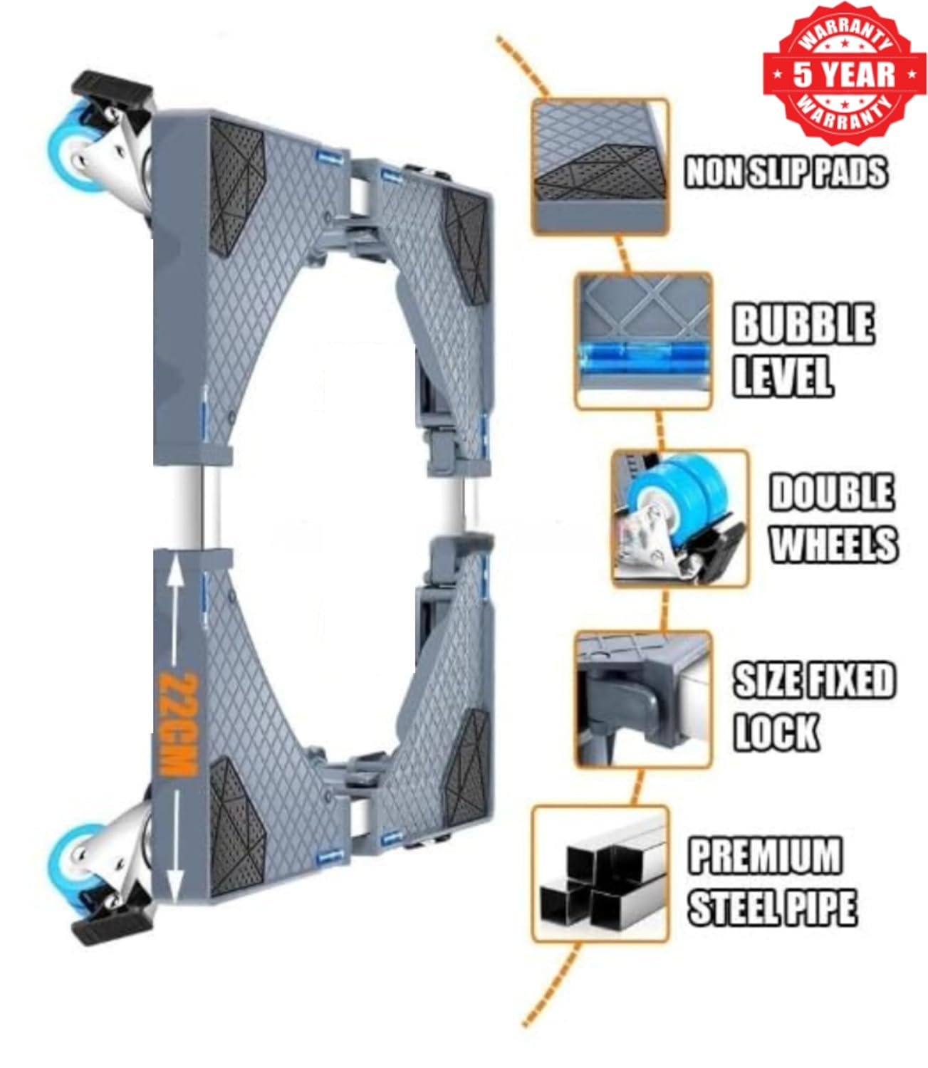🔄 Adjustable Dimensions for Versatility: The stand is fully adjustable, ranging from 45 cm x 44 cm to 70 cm x 70 cm, making it suitable for a wide variety of appliances including top-load washing machines, refrigerators, dishwashers, and air coolers. The tool-free adjustment design ensures quick and hassle-free setup, allowing you to accommodate appliances of different sizes effortlessly.