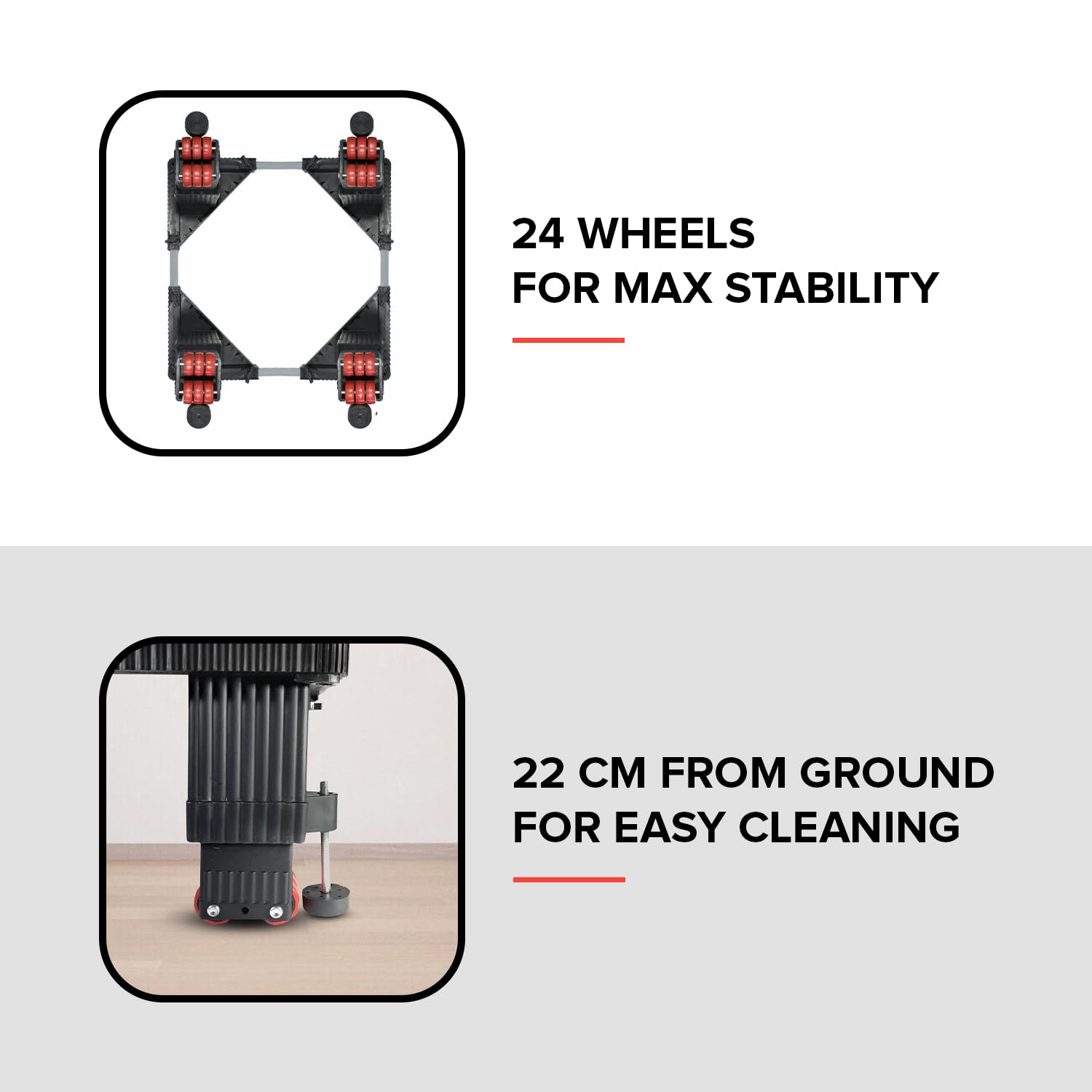 Enhanced Mobility: Equipped with 24 wheels, the stand allows for effortless movement of appliances, simplifying the cleaning process and protecting your devices from moisture and rust.