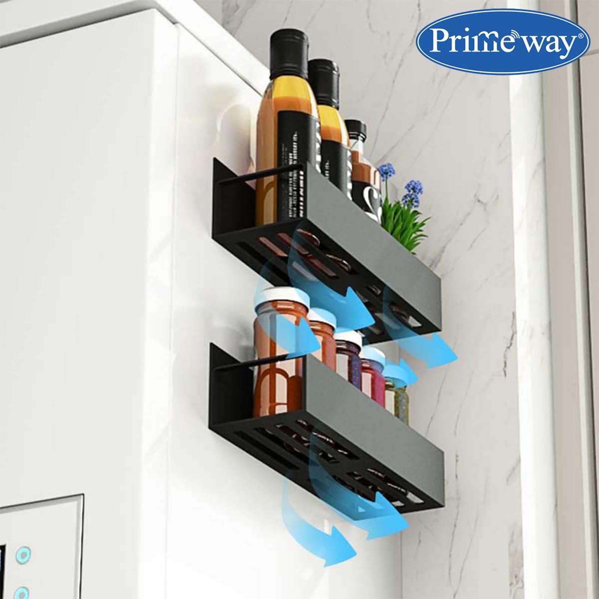 Primeway Magnetic fridge rack is equipped with strong magnet which, which gives you a new option to store all your spice jars, saving space on your cabinet and counter.