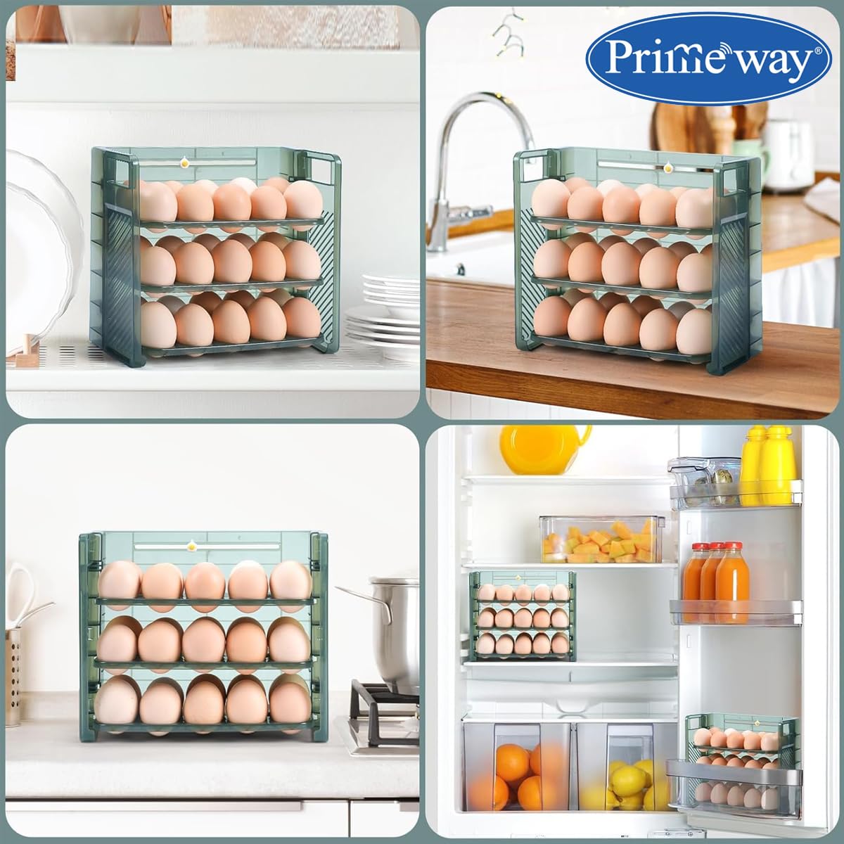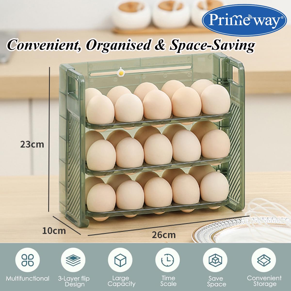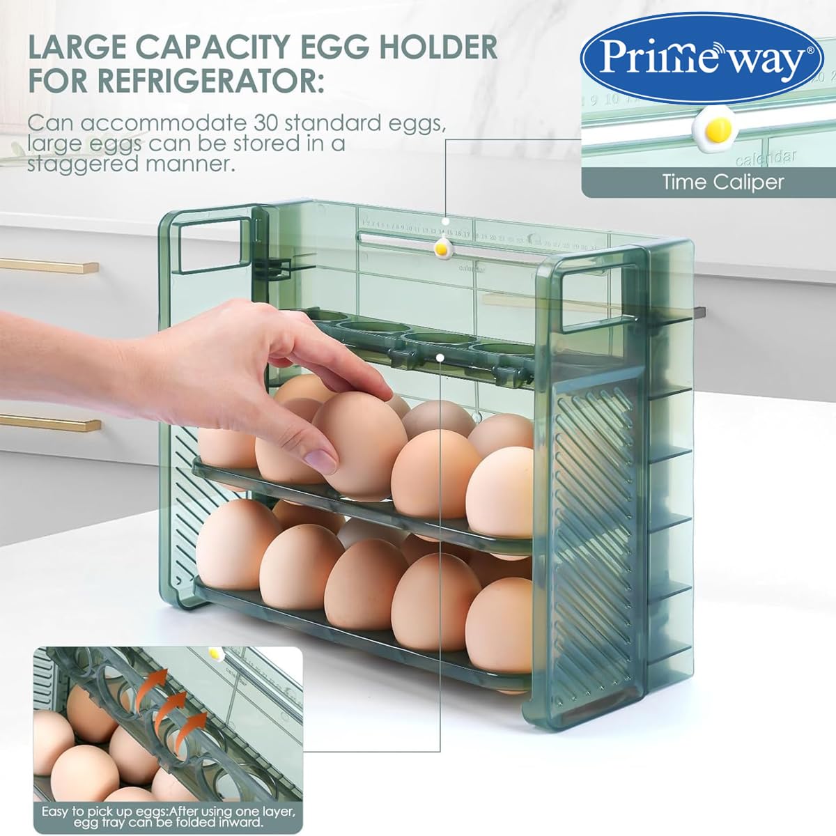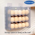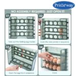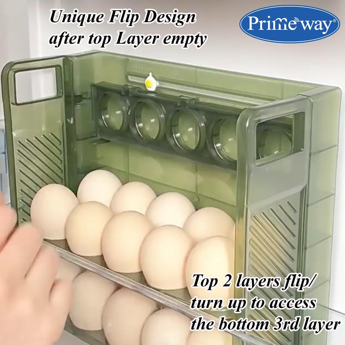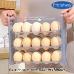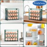 Primeway® Plastic 30 Eggs Holder Organiser Tray with Date Timer | Eggs Storage Box | Egg Container for Fridge | 3 Layer Flip Design | 30-Grid Egg Crate for Refrigerator (Green)