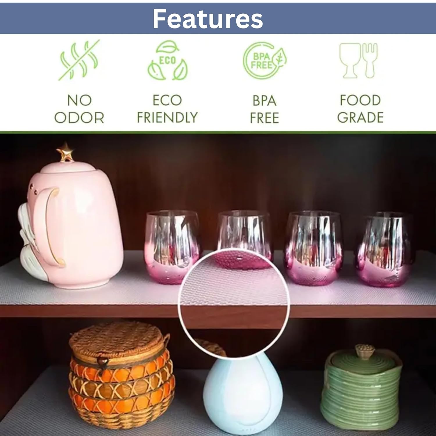 ✅ DIY-Friendly & Customizable – Easily cut to your desired size and shape for a perfect fit on any surface. Great for creative home organization and DIY projects. Suitable for kitchen drawer mats and shelf liners for wardrobe use.