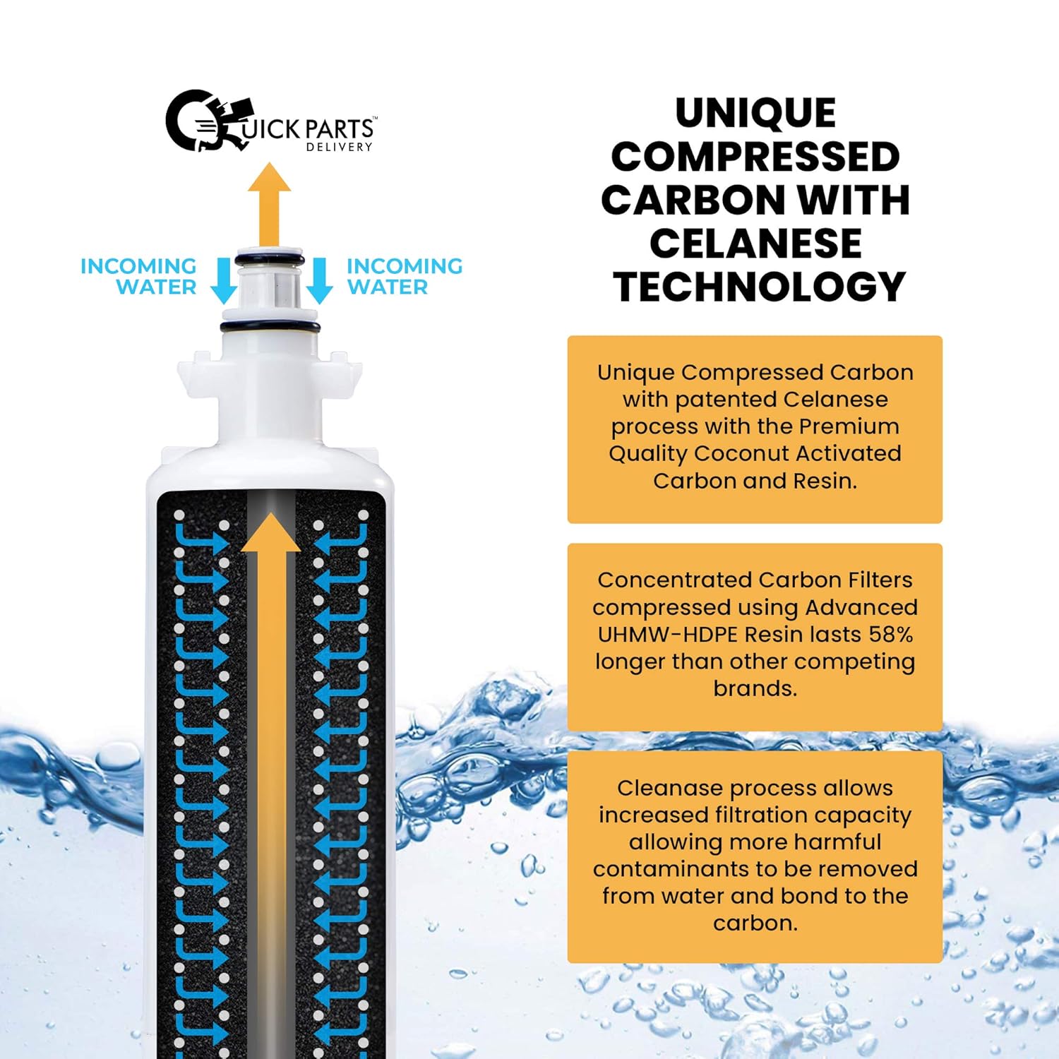 With the highest- quality Coconut Activated Carbon, our filters are mixed, sintered & compressed using our patented Celanese advanced resin.