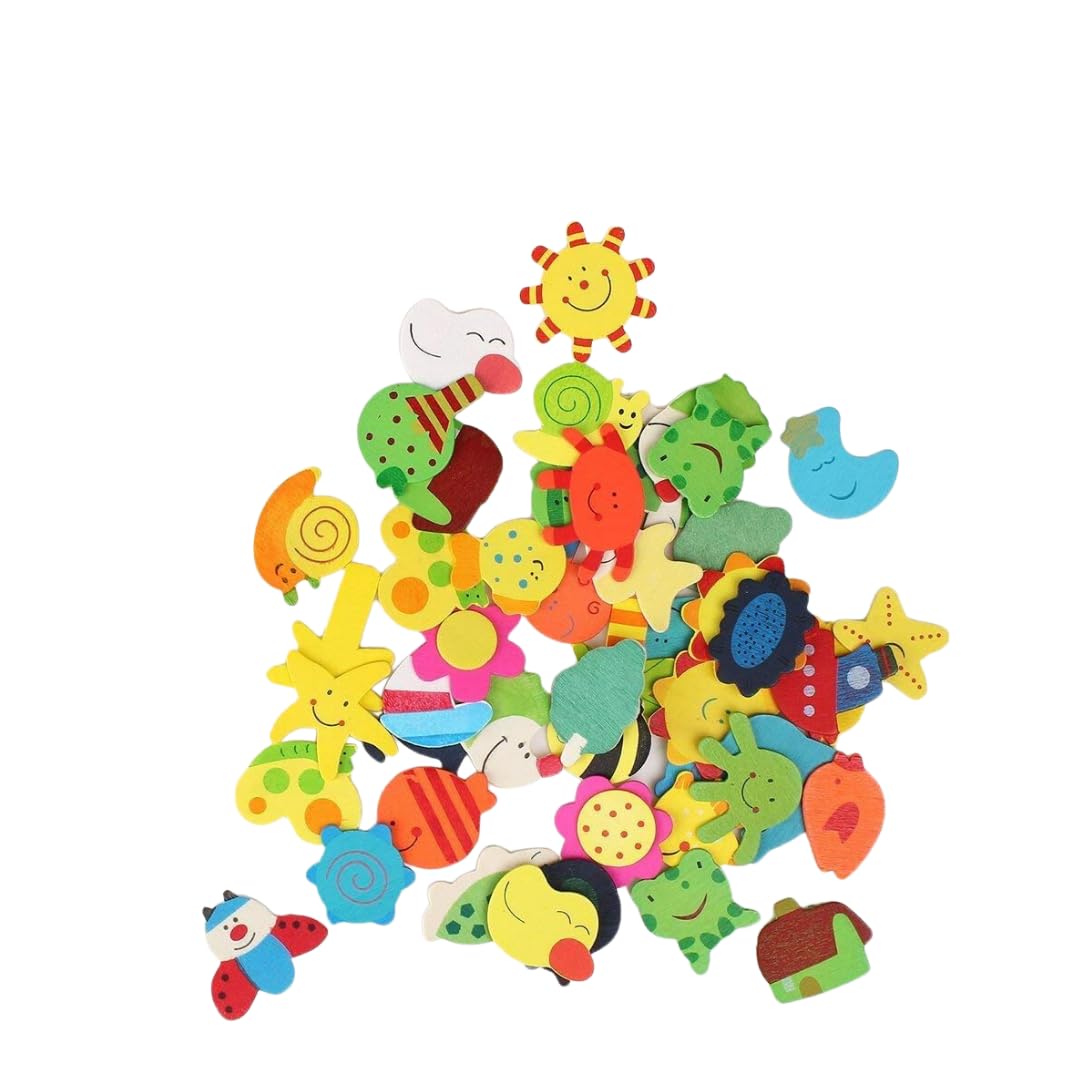 A Colored Wooden Cartoon Or Nature Theme Fridge Magnets ( Set Of 20)