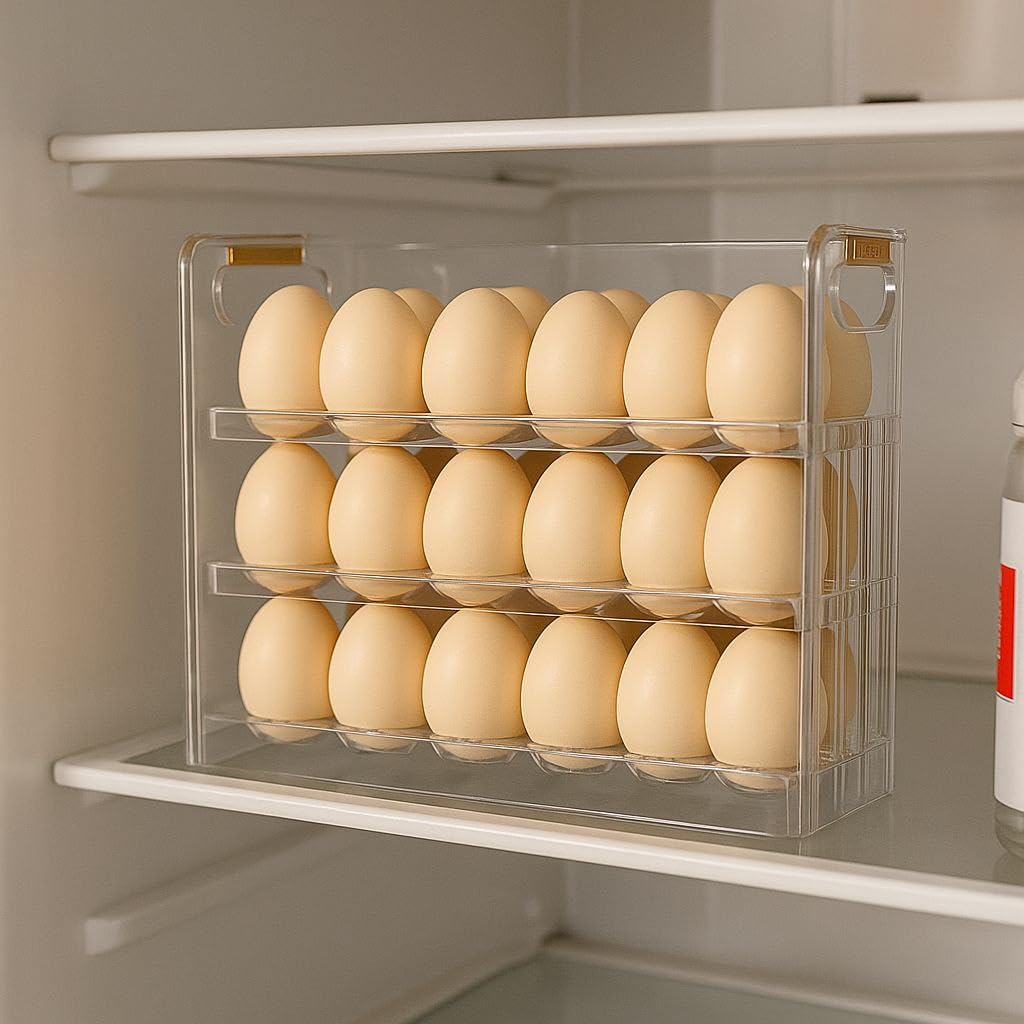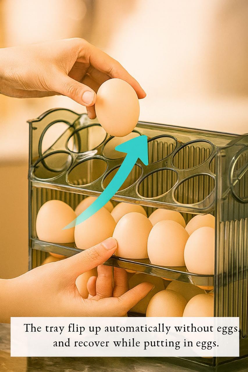 ★ This Egg rack can help you,which 3 layers storage space with 10 grids per layer flip design, which can store 30 eggs at a time, meet the whole family fresh eggs storage needs.
