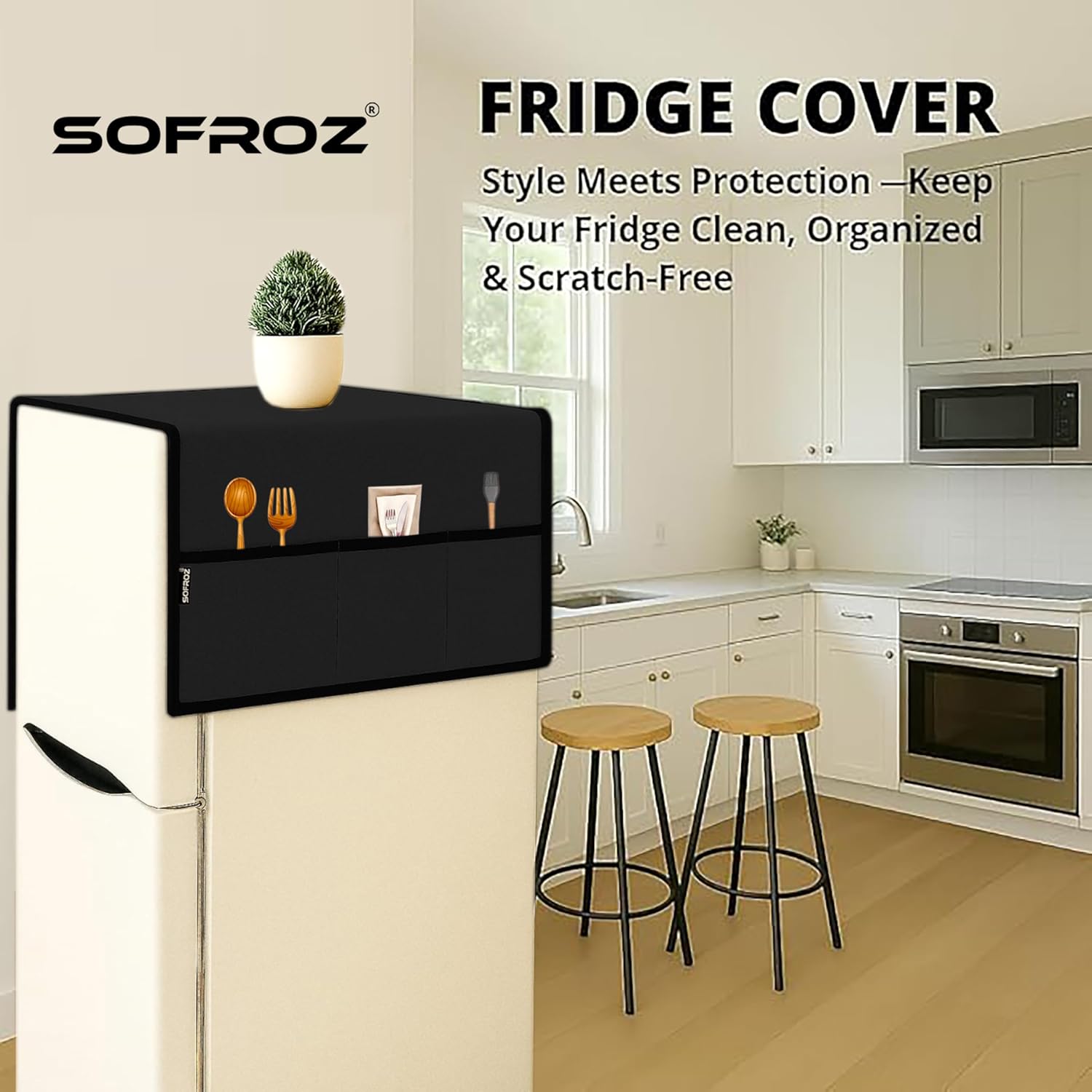 Refrigerator Single Door Waterproof, Dustproof, Protective Cover for Fridges with Extra Storage Space Nylon Top Cover with 6 Storage Pockets (130 x 54 cm) (Black)