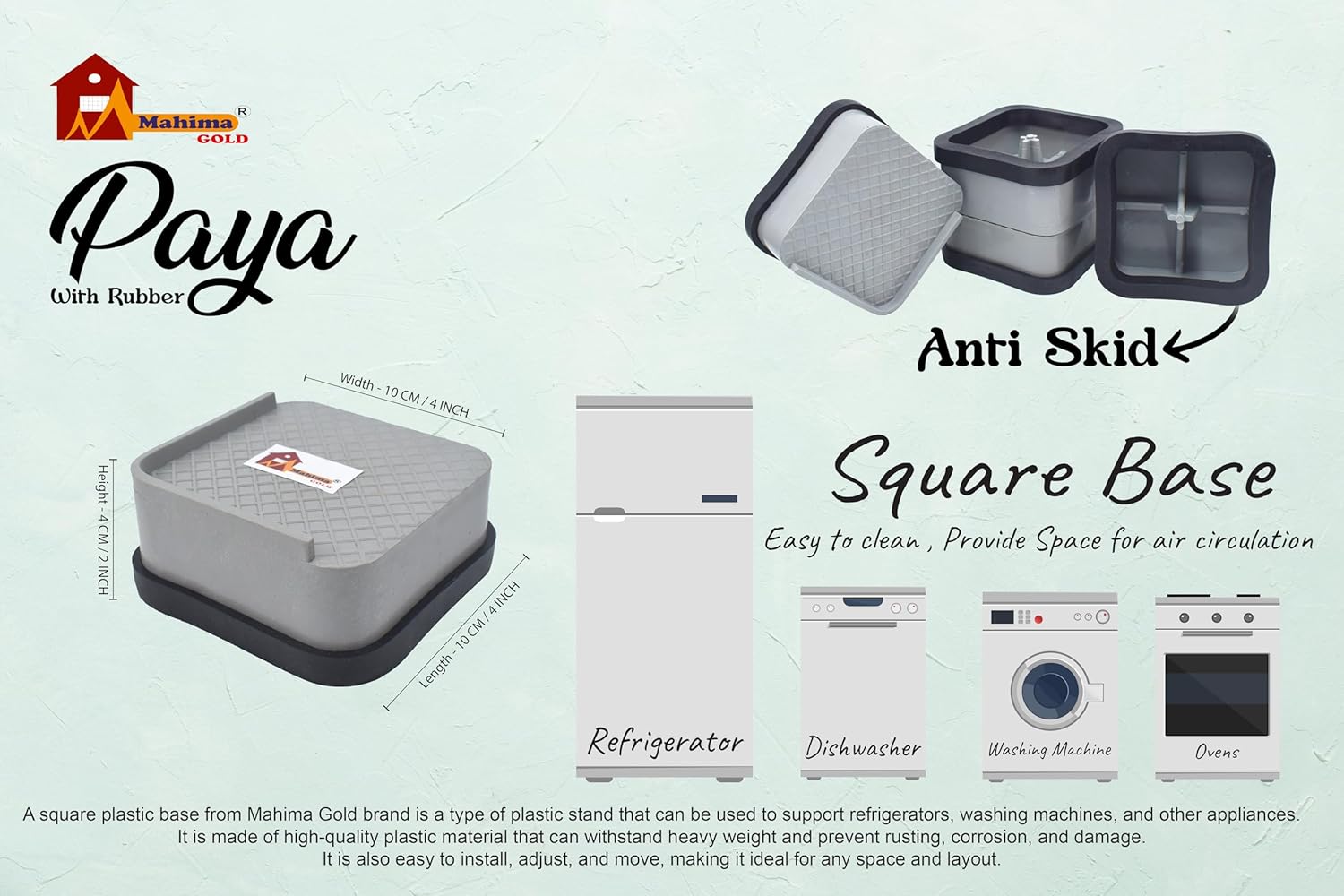 Refrigerator Stands Square Shape Washing Machine Stand Fridge Stand Washer Dryer Furniture Riser Stand Pads Legs(4 Piece) with Rubber Multi Colour