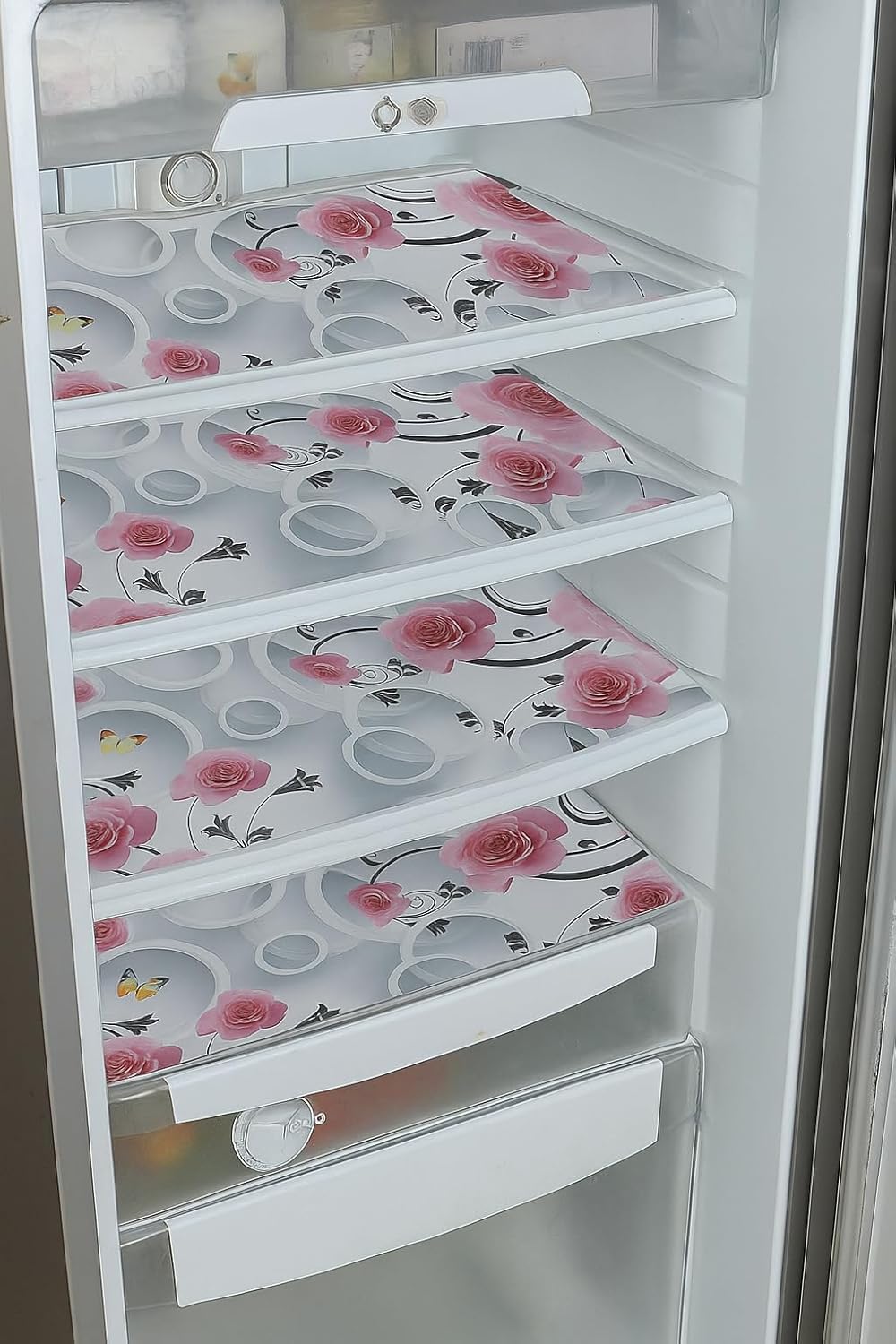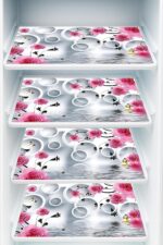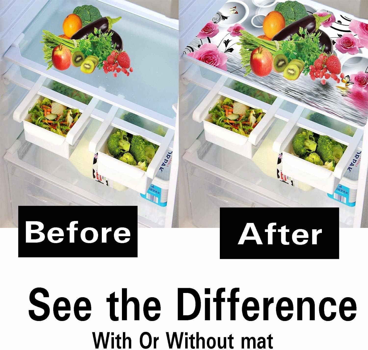 REVEXO Pack of 4 Multipurpose Refrigerator Drawer Mat | Multi Design & Water Proof PVC Material | Size-42 cm x 30 cm,(Multi Colour),Polyvinyl Chloride -REV -107