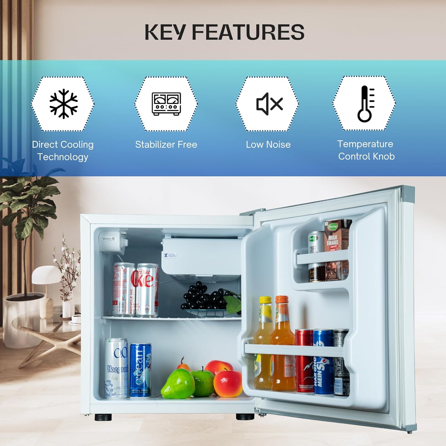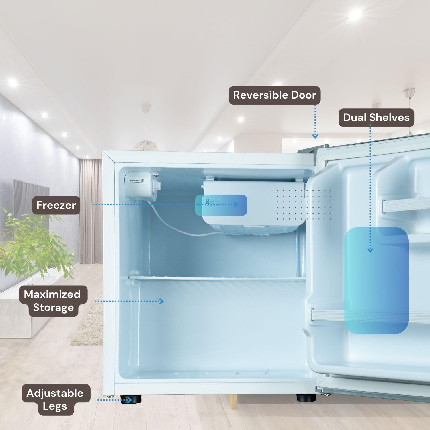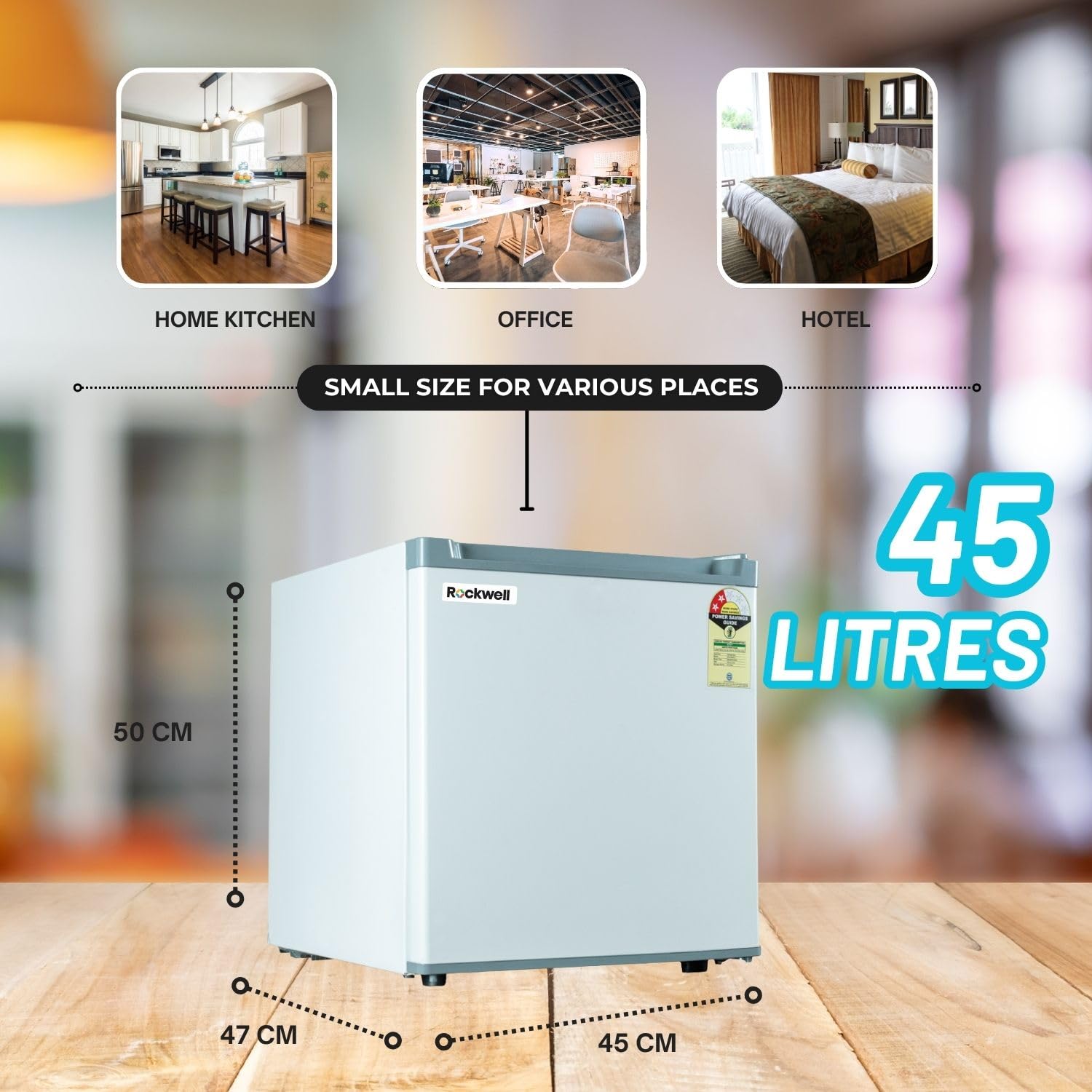 ROCKWELL 47L Mini Fridge with Freezer, 2 Star, Direct Cool Technology, 5 Year Warranty, Adjustable Shelves, Ideal for Bedroom, Small Spaces, Hostels, and Offices, White