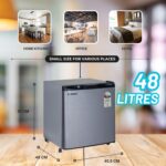 Capacity: With a storage capacity of 48 liters, this mini refrigerator provides enough space to store essentials like beverages, snacks, fruits, and a few frozen items. It’s perfect for individuals or small families looking for extra refrigeration without taking up too much space.