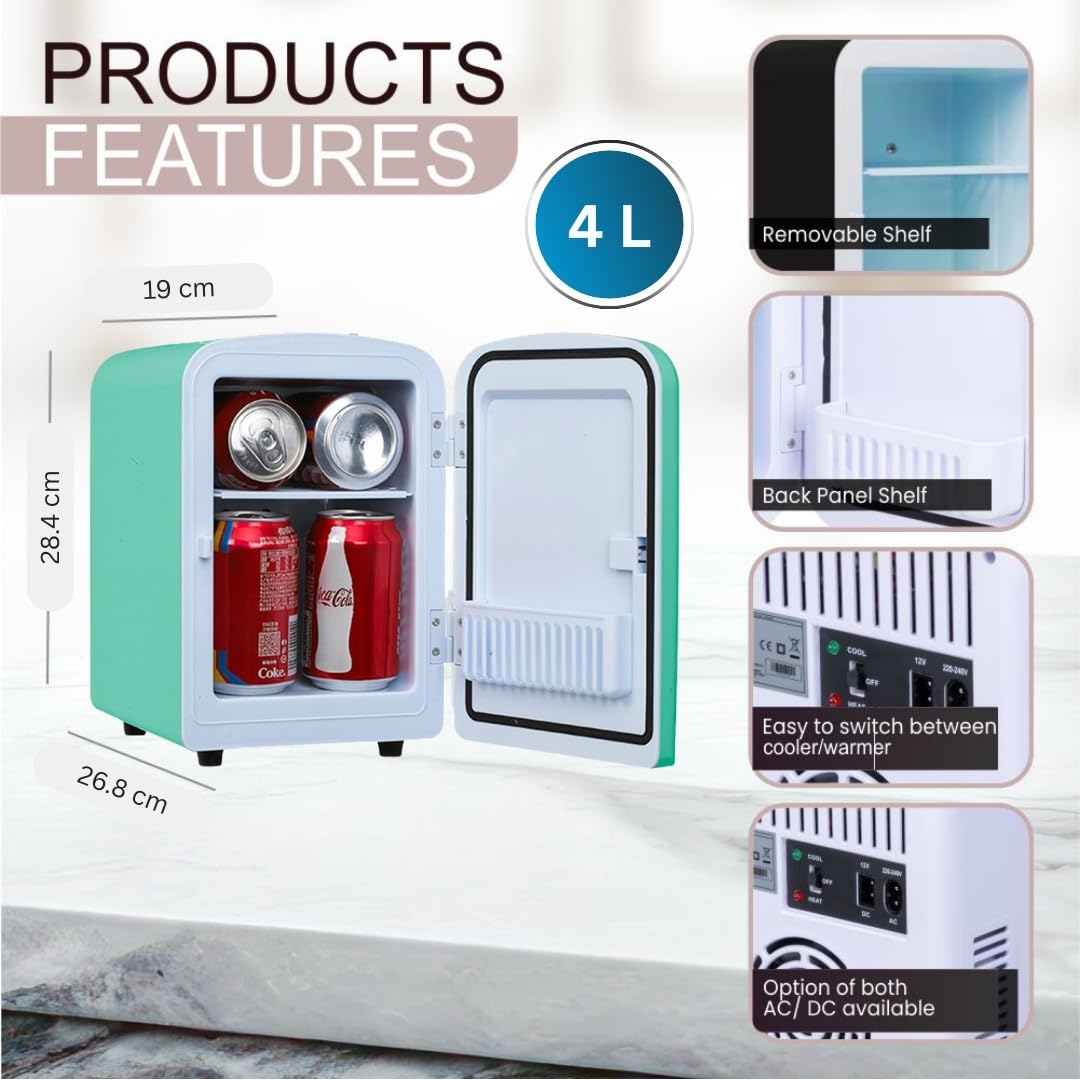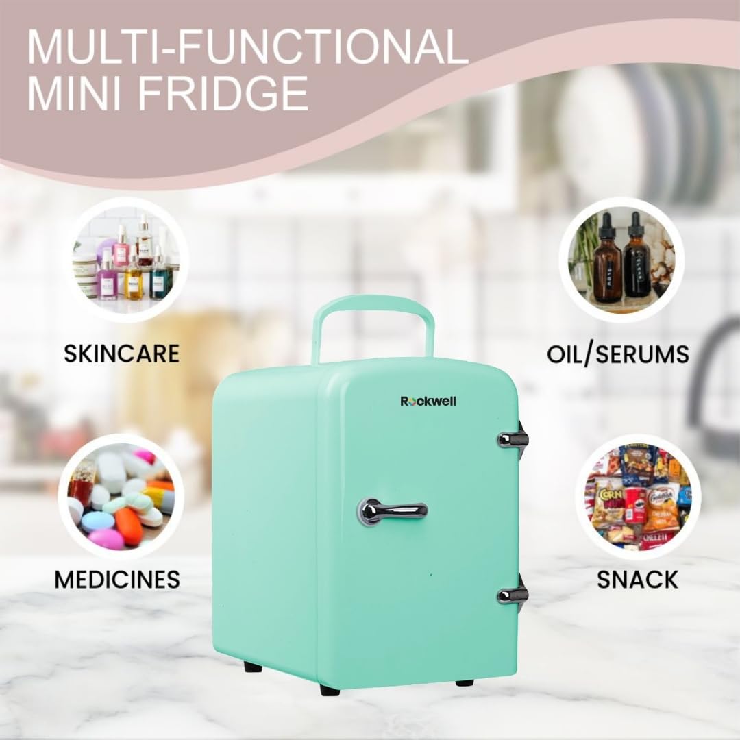 ROCKWELL 4L Car/Home Mini Cooler and Warmer for Drinks, Skincare, Cosmetics,Snacks & Medicine – Green