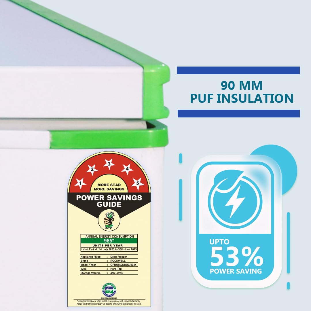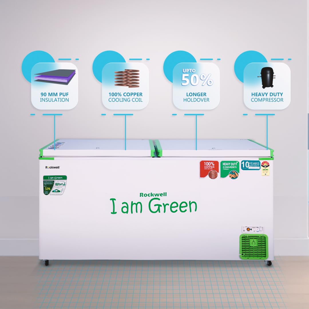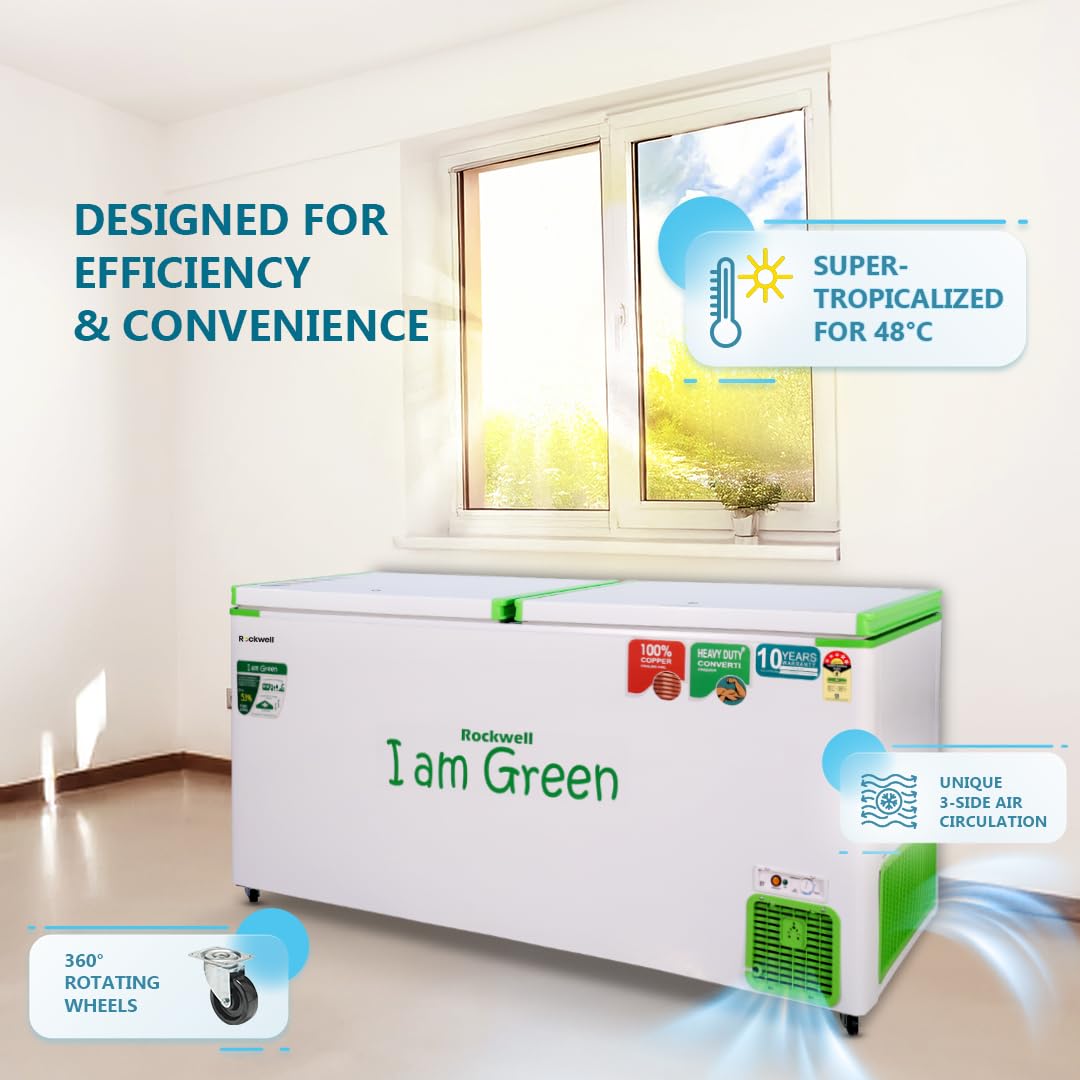 ROCKWELL 550DDUC GREEN Convertible Deep Freezer, 5 Star, Double Door Chest Freezer, 10-Year Cooling Coil Warranty, 5-Year Comprehensive Warranty, Up to 53% Power Saving