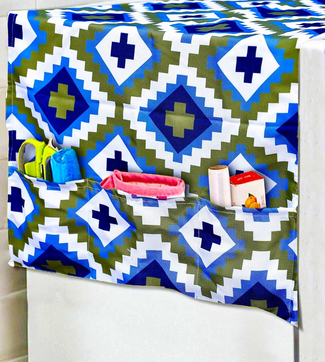 8 reviews for Roseate Fridge Cover Single Door (130 x 55 cm) Digital Print Polyester Anti Dust Cover with 6 Utility Pockets Washing Machine Organiser/Refrigerator Top Cover (Zig Zag) Pack of 1
