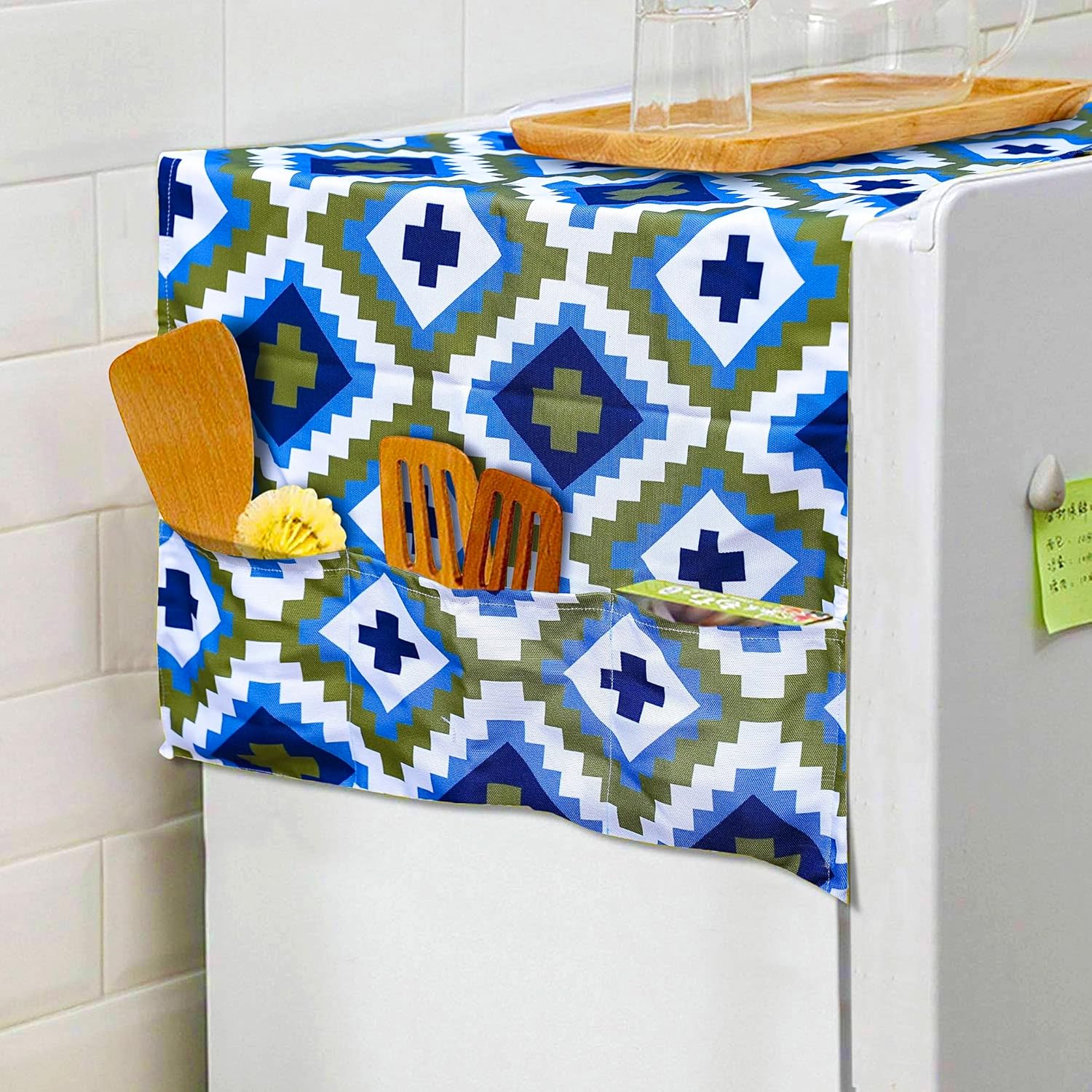 Roseate Fridge Cover Single Door (130 x 55 cm) Digital Print Polyester Anti Dust Cover with 6 Utility Pockets Washing Machine Organiser/Refrigerator Top Cover (Zig Zag) Pack of 1