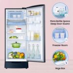 Samsung 183 L, 3 Star, Digital Inverter, Direct-Cool Single Door Refrigerator (RR20C1823U8/HL, Blooming Saffron Blue, Base Stand Drawer)