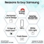 Samsung 189 L 5 Star Refrigerator is cooling very fast and it’s start and running with Digital inverter early and very low noise. Samsung quality is good and easy to cleaning. This Refrigerator is big size and big space and Functionality is very understanding. It’s lighting is very impressive and so high brightness