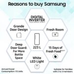 8 reviews for Samsung 223 L, 3 Star, Digital Inverter, Direct-Cool Single Door Refrigerator (RR24D2Z23CU/NL, Camellia Blue, Base Stand Drawer)