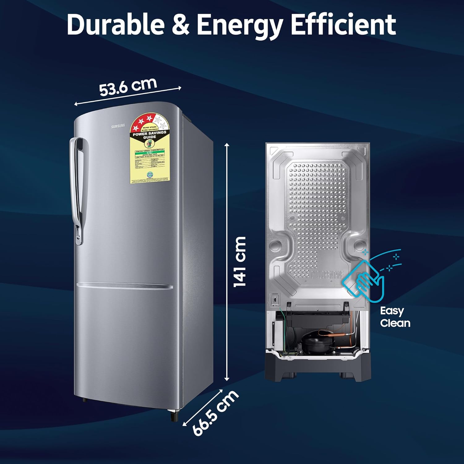 Samsung 223 L, 3 Star Inverter Direct-Cool Single Door Refrigerator (RR24C2723S8/NL, Silver, Elegant Inox)